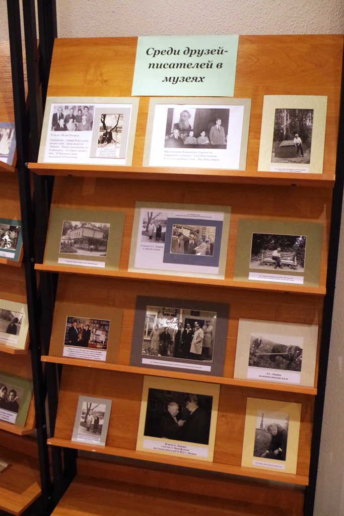 … Была устроена выставка, посвящённая писателю. Экспонаты – его книги, фотографии, очерки и статьи о нём и его творчестве любезно предоставили дочери Александра Григорьевича Светлана Ковалёва и Ирина Урюпина, которые живут в Москве и являются активными членами Тульского землячества, и младшая дочь Елена Казакова, живущая в Туле.