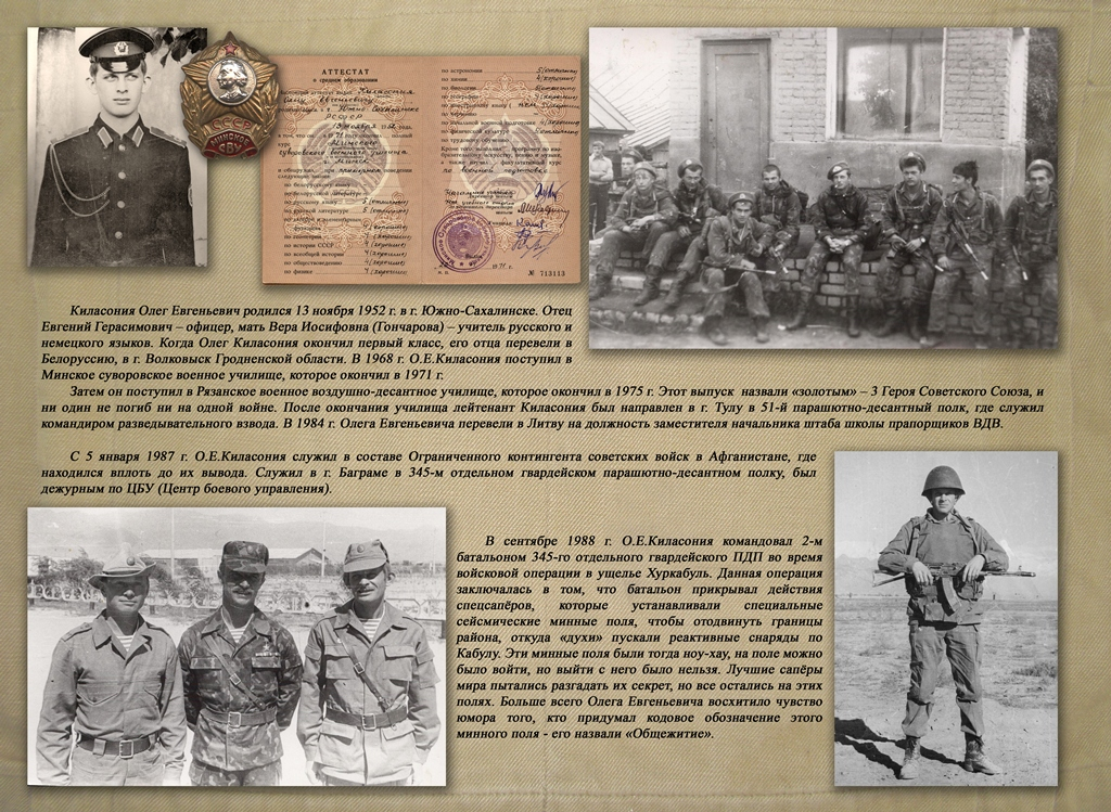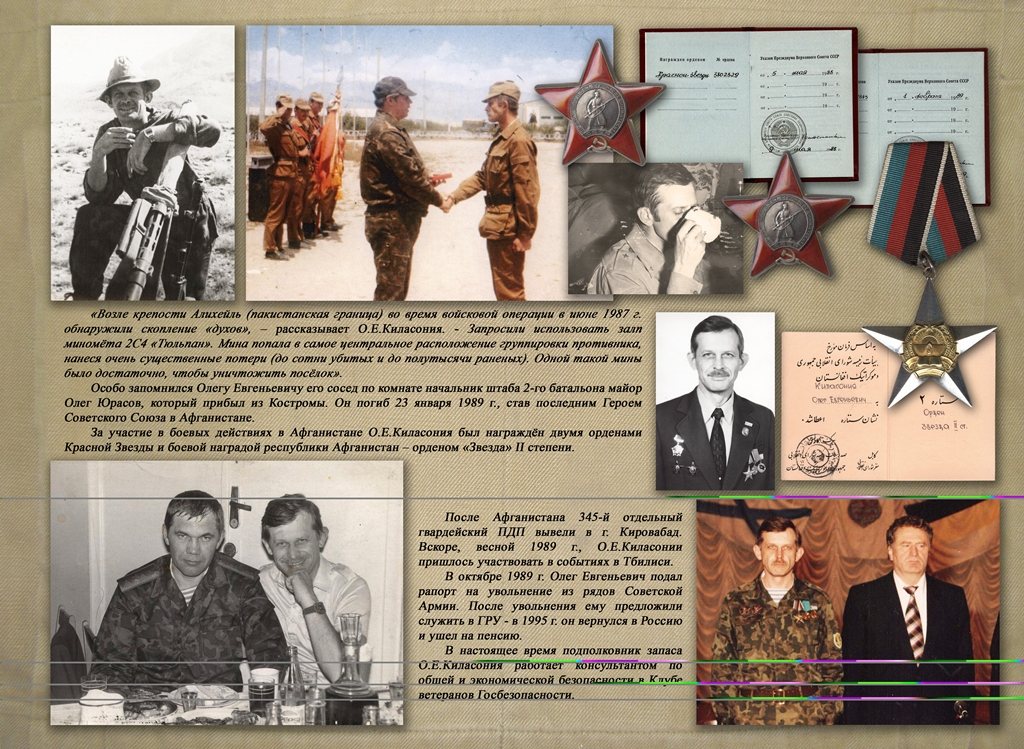 7. Киласония Олег Евгеньевич // Время выбрало нас: тулякам – солдатам и офицерам, воевавшим в Афганистане, посвящается … : [альбом] / Музей военной истории Тульского края. – Тула, 2010. – Вып. 3.