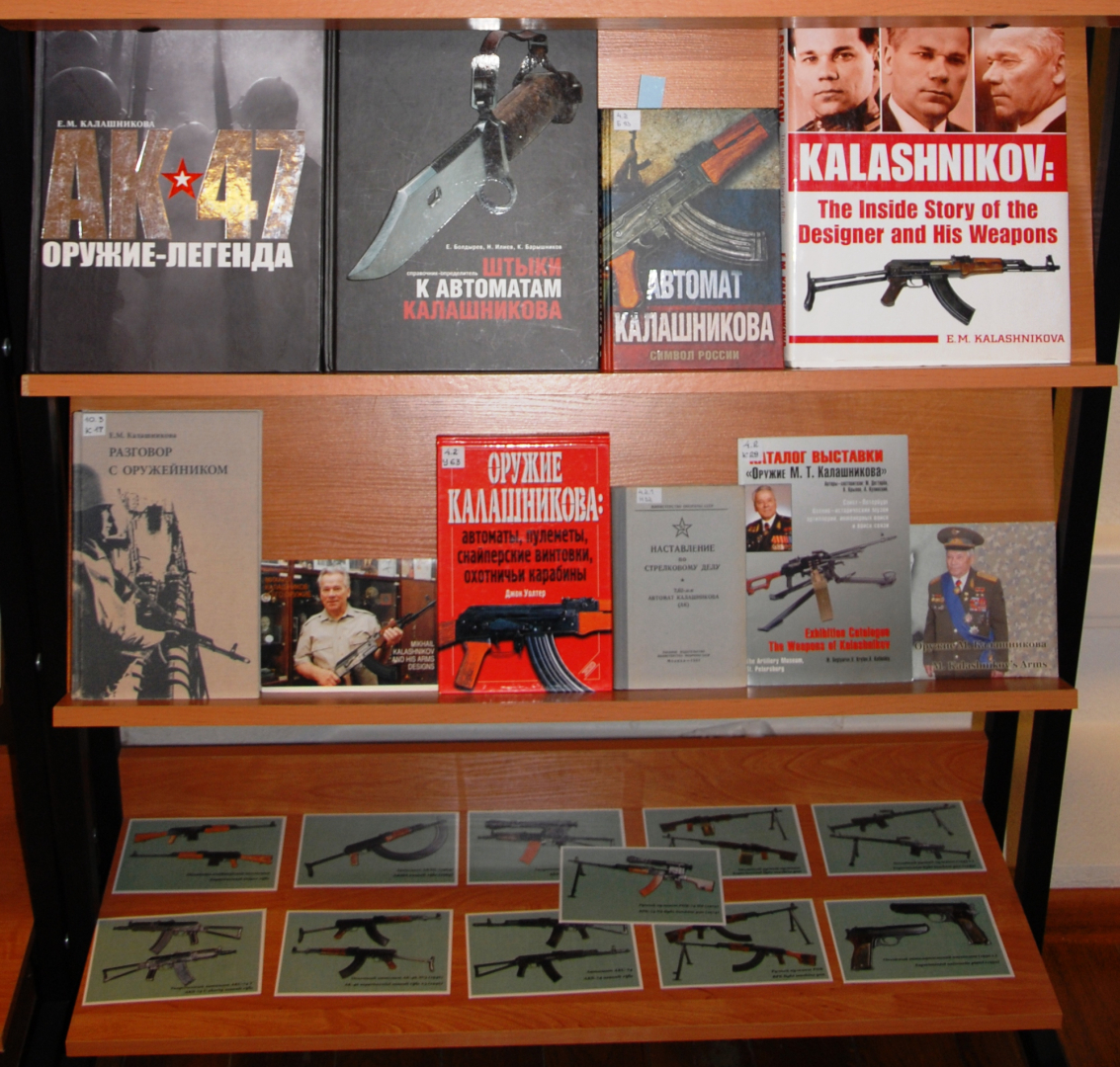 В читальном зале музея оружия действует книжно-иллюстративная выставка «Легендарный Калашников», приуроченная к 100-летию со дня рождения легендарного конструктора.