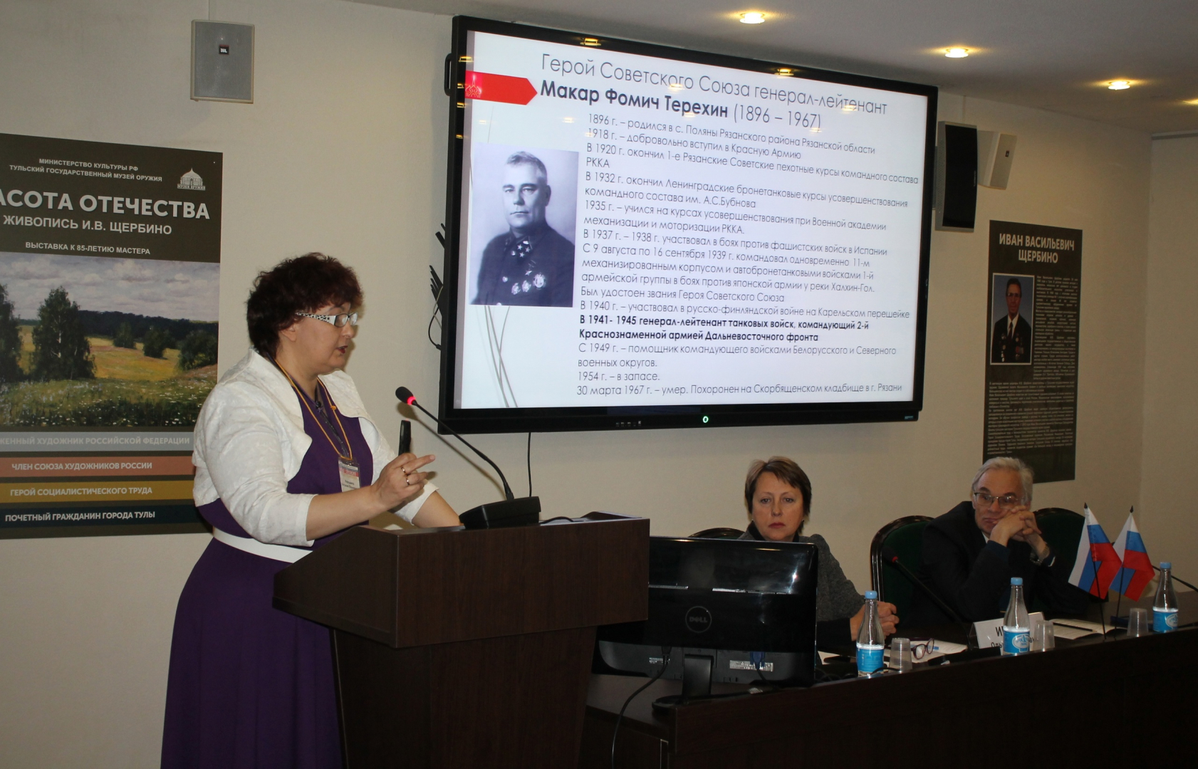 С приветствием к участникам конференции выступила директор Тульского государственного музея оружия, Почетный гражданин Тульской области, кандидат социологических наук Надежда Ивановна Калугина.