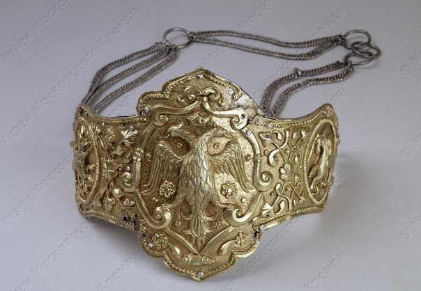 Эпоха царя Алексея Михайловича, по отзывам современников как российских, так и иностранных, отличалась необыкновенно пышными придворными церемониями, такими как смотры войска, выступления государя в поход или встречи иностранных посольств. Для служилых людей, которые принимали участие в парадных мероприятиях русского двора, в Оружейной палате, приказах Золотого и Серебряного дела были выполнены особые предметы экипировки. Они поражают своим великолепием, роскошью и трудоемкостью изготовления.