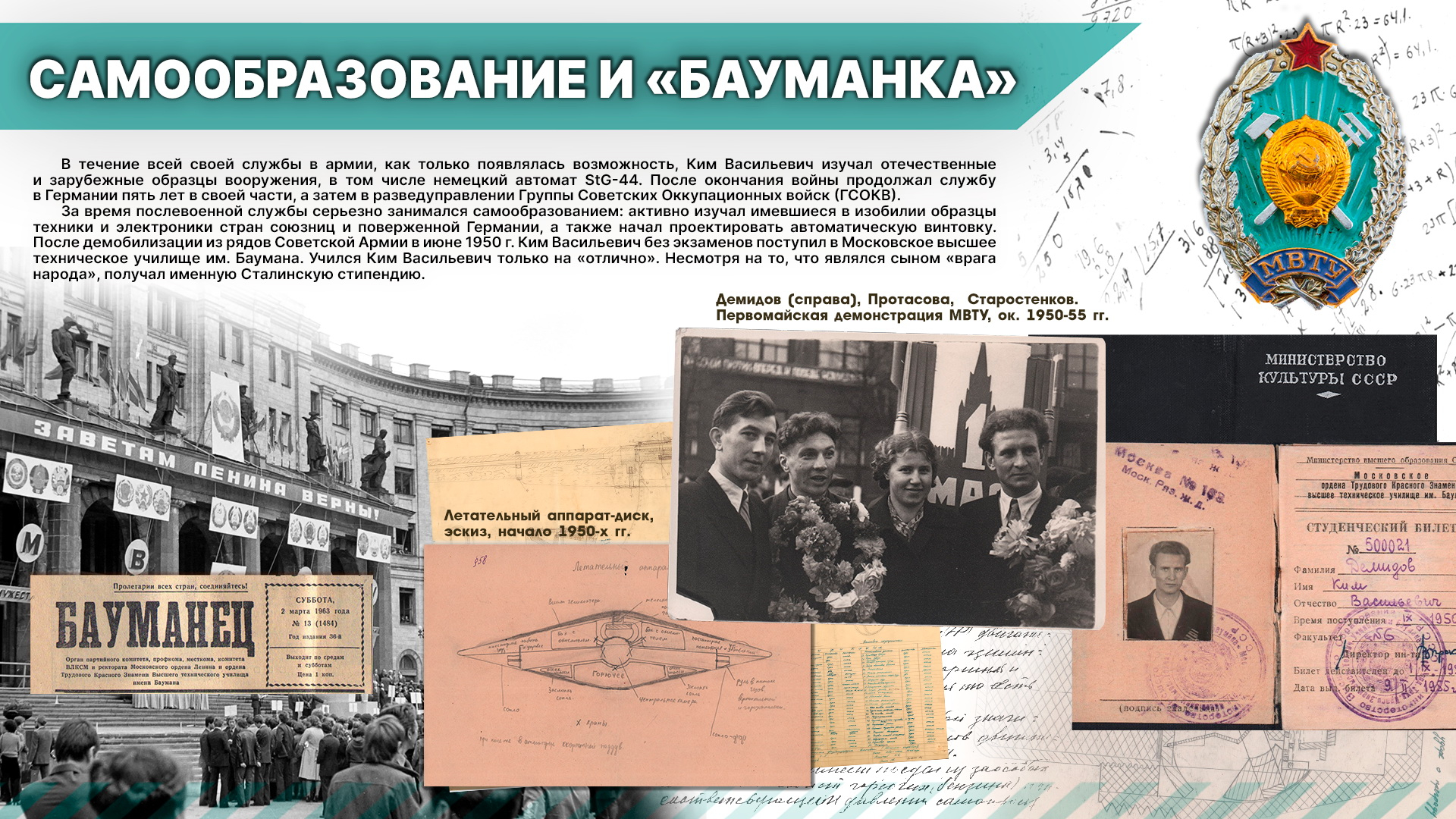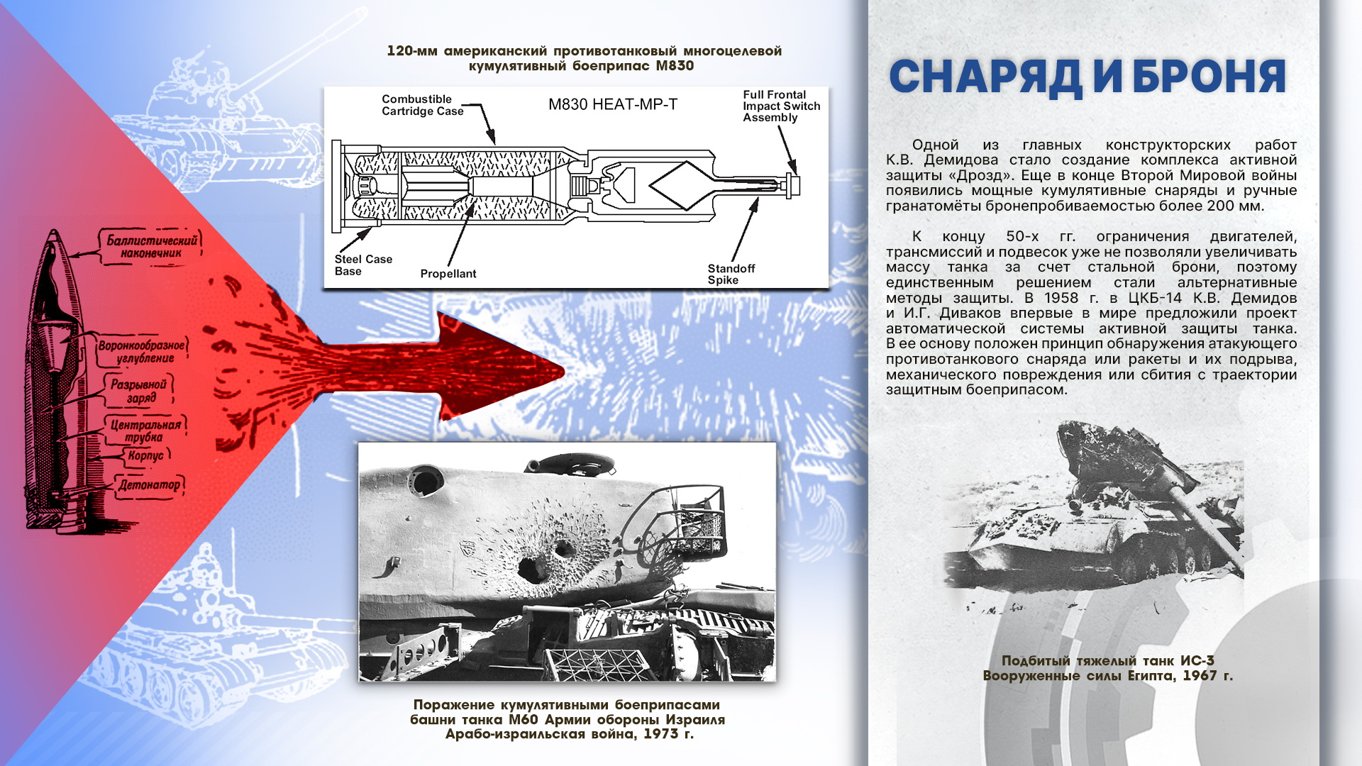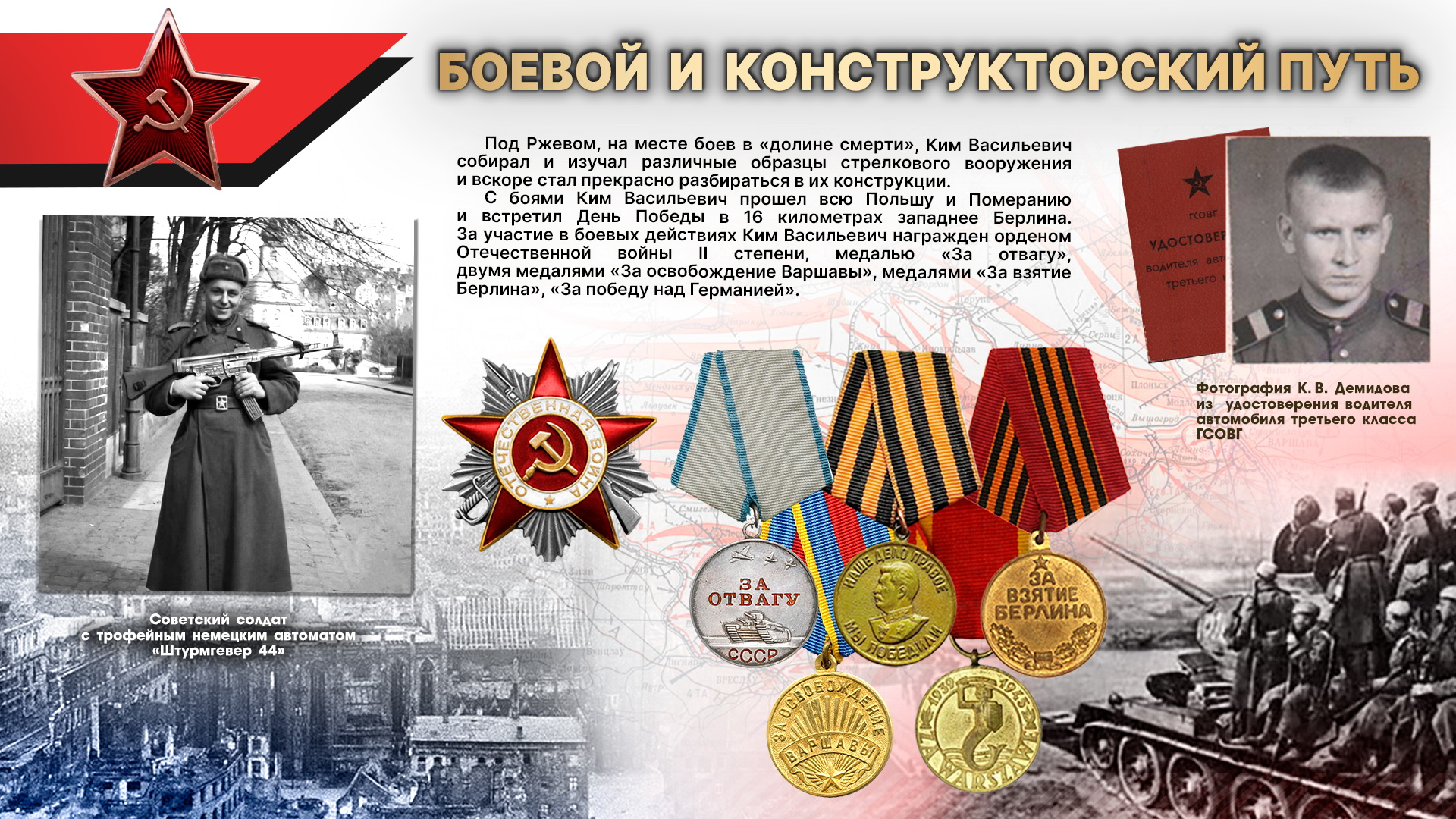Также в оформлении задействованы изображения различных образцов военной техники, в создании которых К.В. Демидов принял самое деятельное участие.