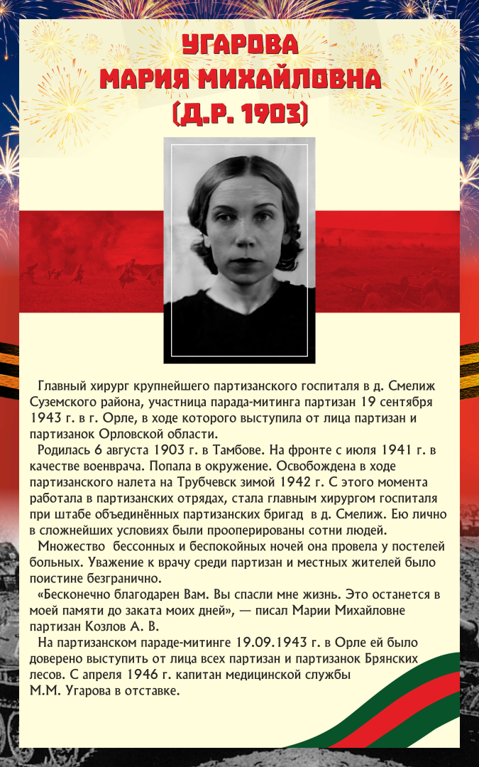 Выставка раскрывает боевой путь выдающихся представителей партизанского движения и участников знаменитого парада – А.П. Матвеева, А.П. Горшкова, М.И. Дуки, М.М. Угаровой.