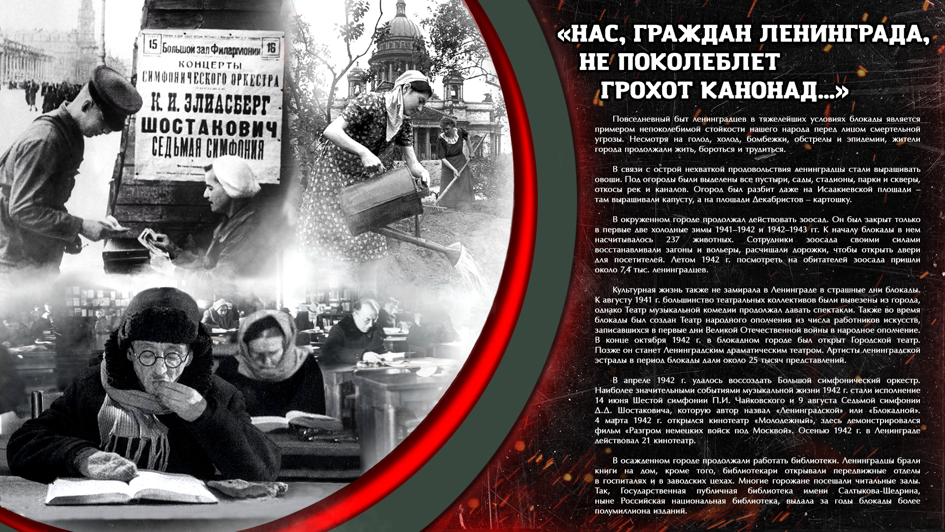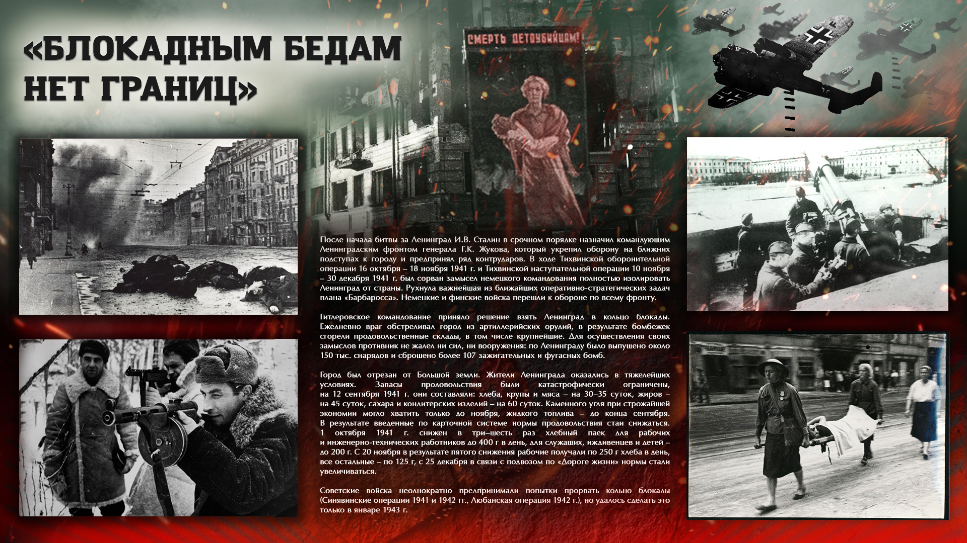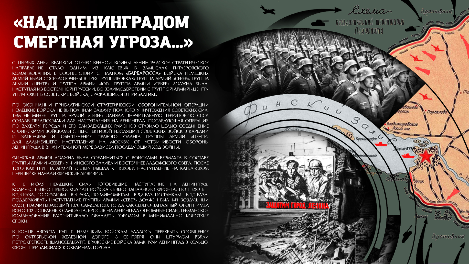 Битва за Ленинград была самой продолжительной в истории Второй мировой войны, а его блокада не имеет аналогов в мировой военной истории. Город находился в осаде на протяжении 872 дней с 8 сентября 1941 г. по 27 января 1944 г. За этот период от голода, холода, бомбежек и артобстрелов погибли более 1 млн человек.