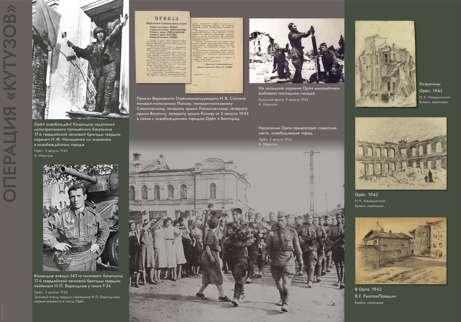 Проект создан Музеем Победы в содружестве с Областным бюджетным учреждением культуры «Курский областной краеведческий музей» и Бюджетным учреждением культуры Орловской области «Орловский краеведческий музей».