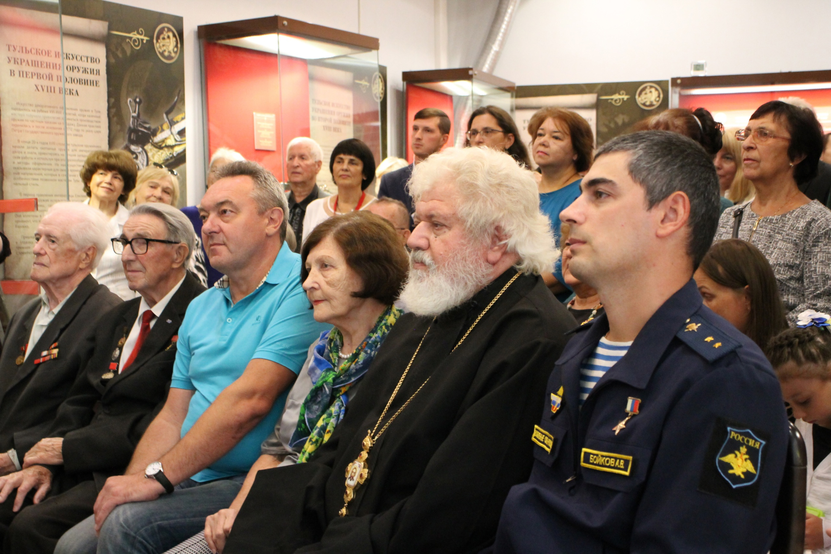 «… Глядя на образцы, которые представлены на этой выставке, а также в основной экспозиции Тульского музея оружия, можно только удивляться развитию творческой мысли наших тульских оружейников!» – сказал в своем приветствии Виктор Валентинович Матвеев, председатель епархиального отдела по взаимодействию с Вооруженными Силами и правоохранительными учреждениями Тульской области, протоиерей, настоятель храма Рождества Христова (Николо-Зарецкий).
