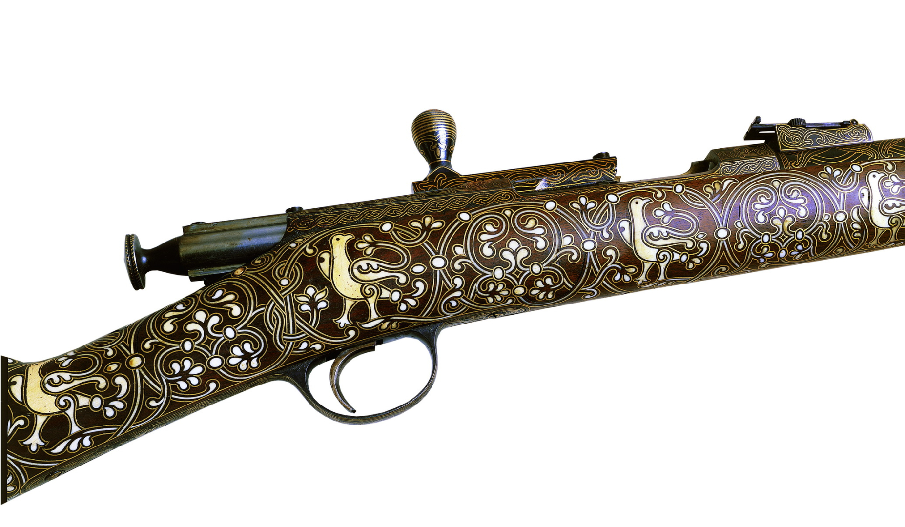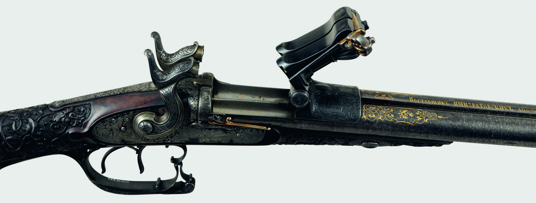 Особый интерес вызывает охотничий штуцер со сложным декором из собрания Музеев Московского Кремля. Тульский государственный музей оружия представил высокохудожественные ружья советской эпохи и уникальные миниатюры оружия.