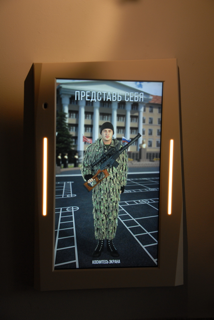Мультимедийный комплекс позволяет каждому посетителю музея «примерить» на себя один из образцов униформы военнослужащих различных родов войск современной российской армии и сфотографироваться.