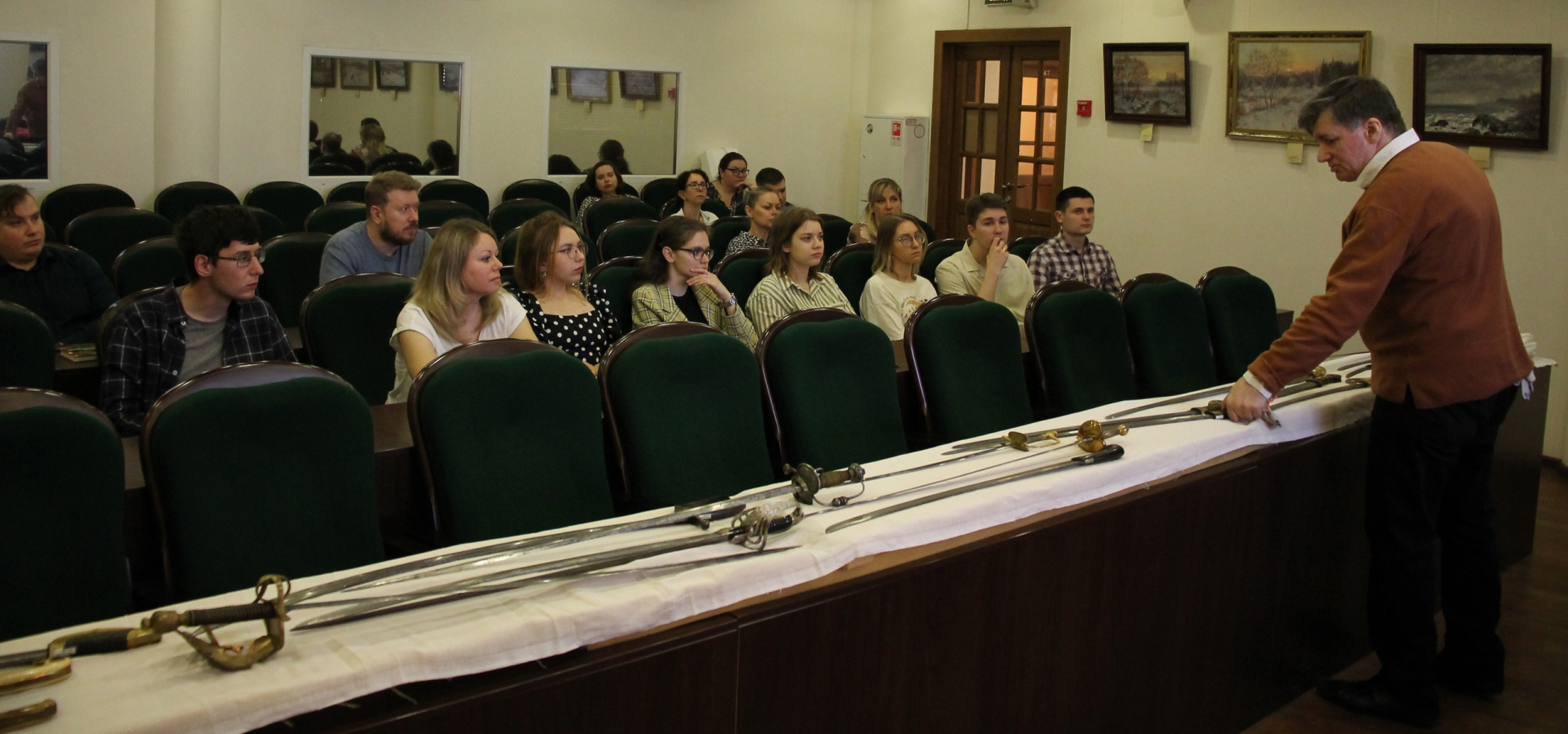 Сегодня тайны и секреты уникальных старинных палашей, шпаг, шашек, сабель и кинжалов раскрыл хранитель музейных предметов А.В. Зубарев.