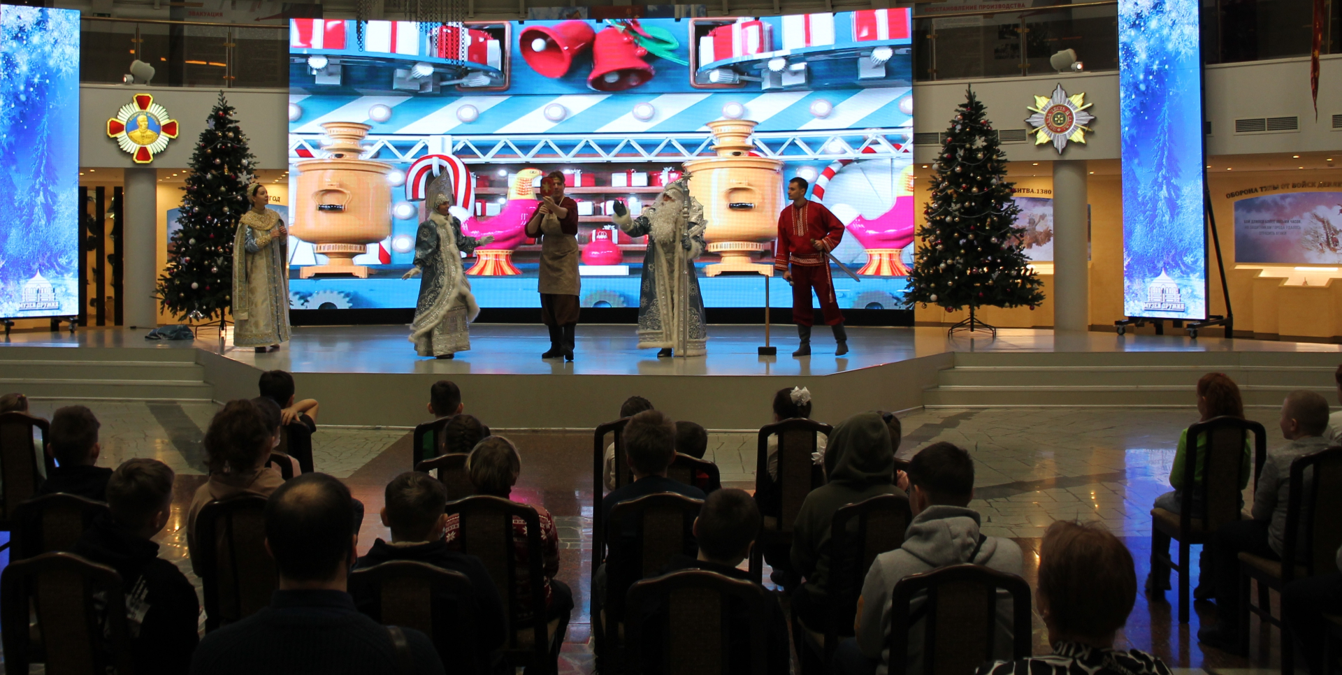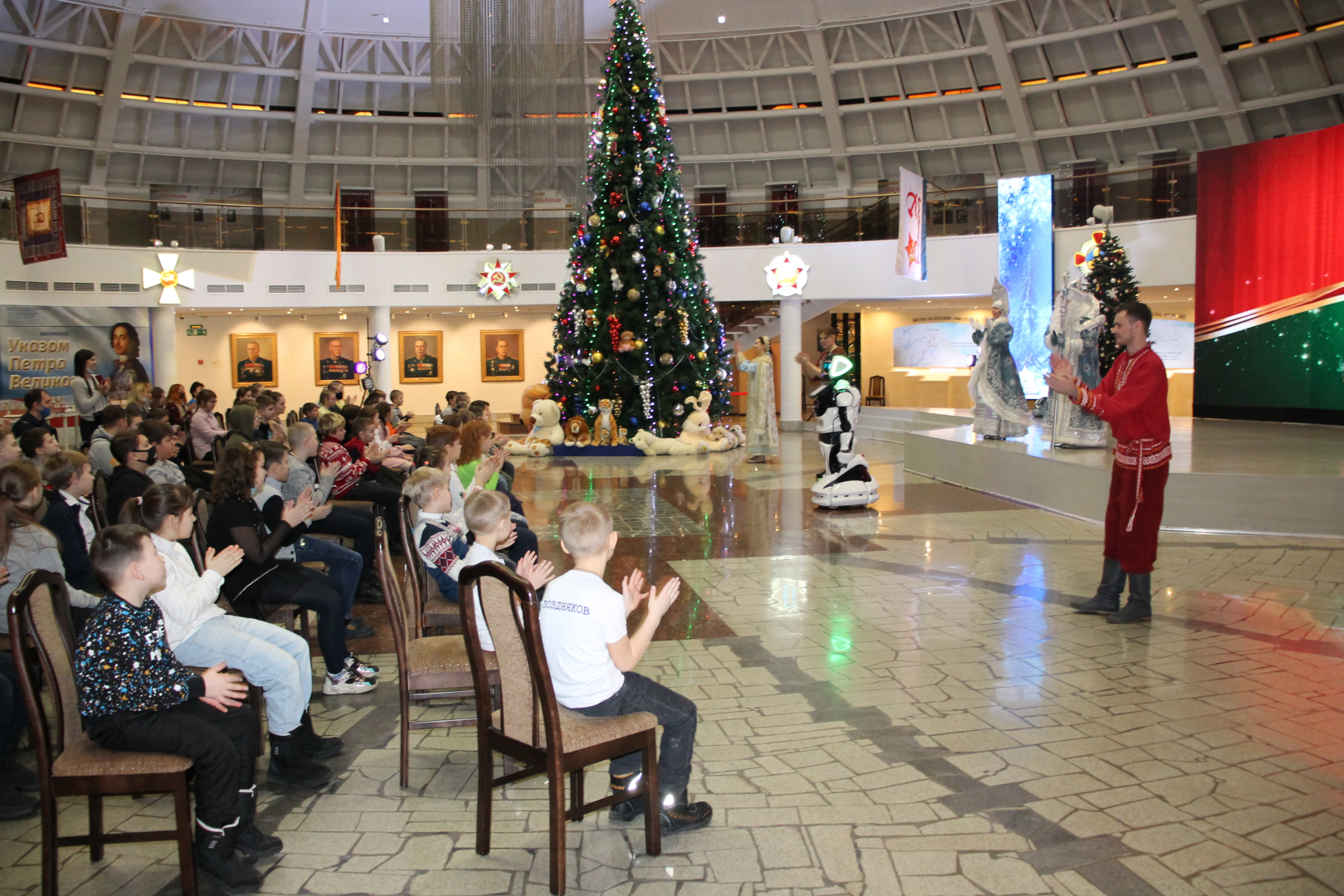 В торжественном зале под куполом с роскошной 9-метровой красавицей-елкой мальчишек и девчонок с нетерпением ждут удивительные сказочные герои и очаровательный музейный робот Акинфий!