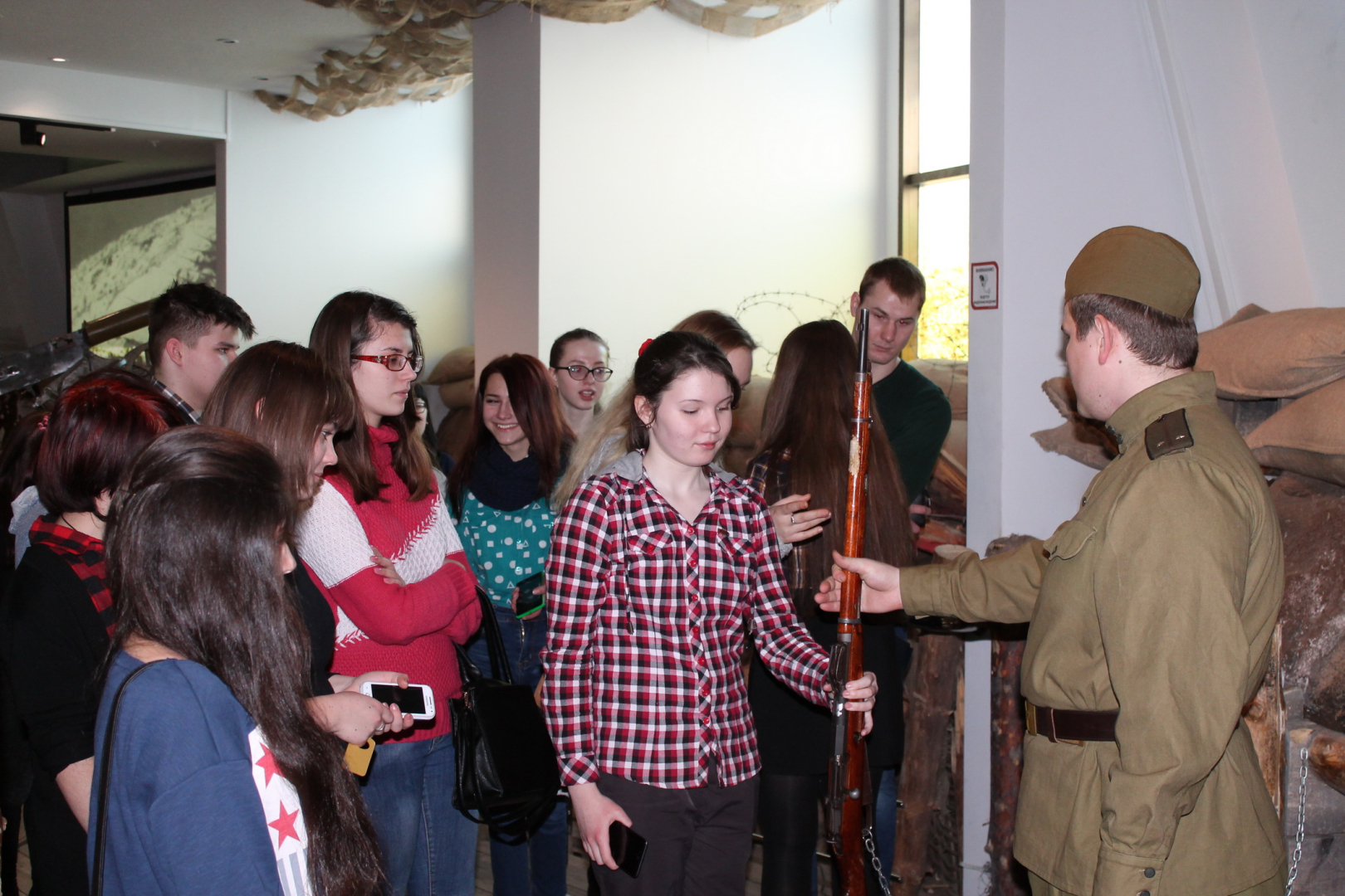 «Очень масштабно и величественно. Экспозиция шикарна, а выставка «Война и мифы» заставляет думать, спорить, делать выводы и, самое главное, чувствовать себя частью тех событий» - такими впечатлениями делились сегодня студенты Вузов и Ссузов, посетившие музей оружия в День российского студента.