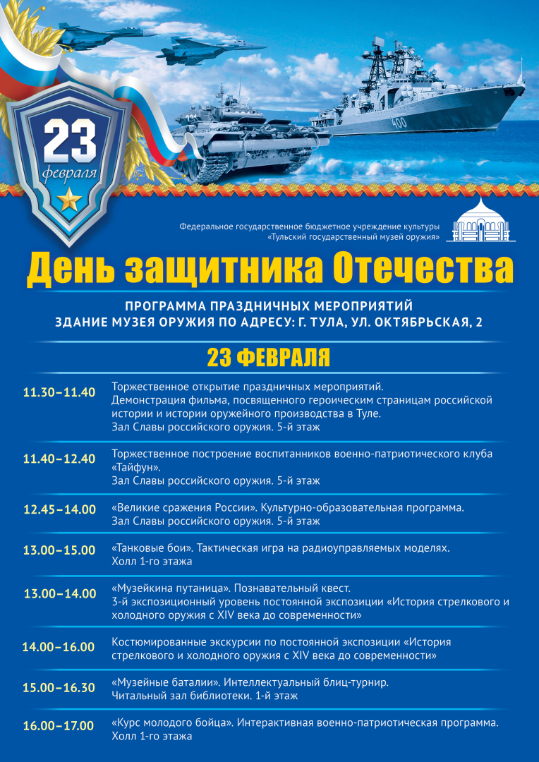 В Тульском музее оружия торжественные мероприятия, посвященные Дню защитника Отечества, пройдут под девизом «Сохраним и приумножим традиции российского воинства!».