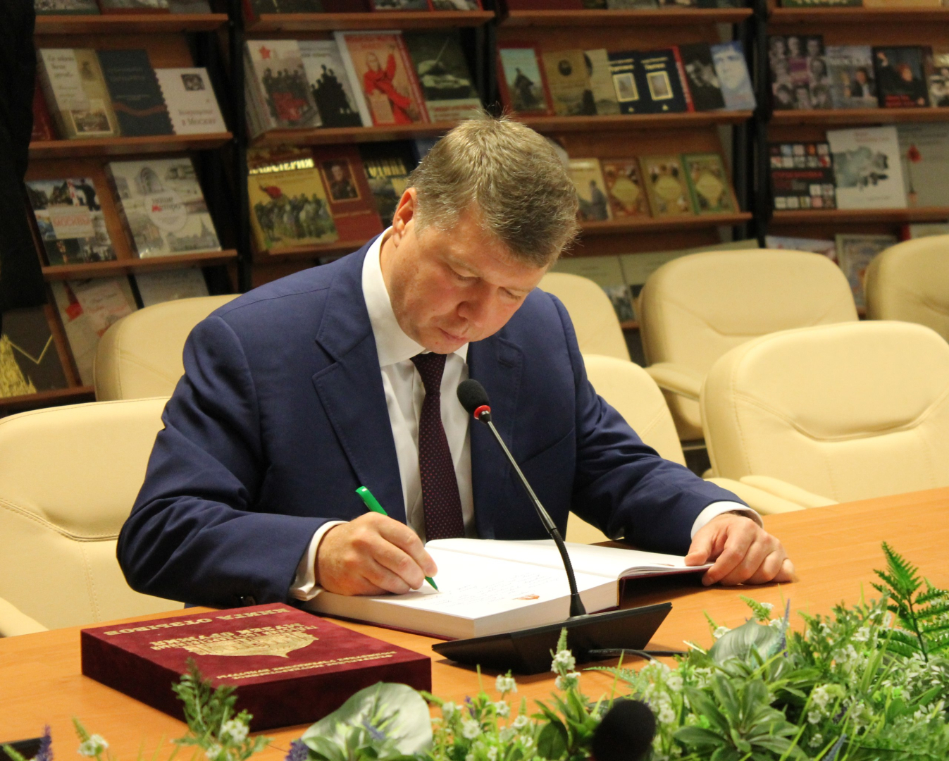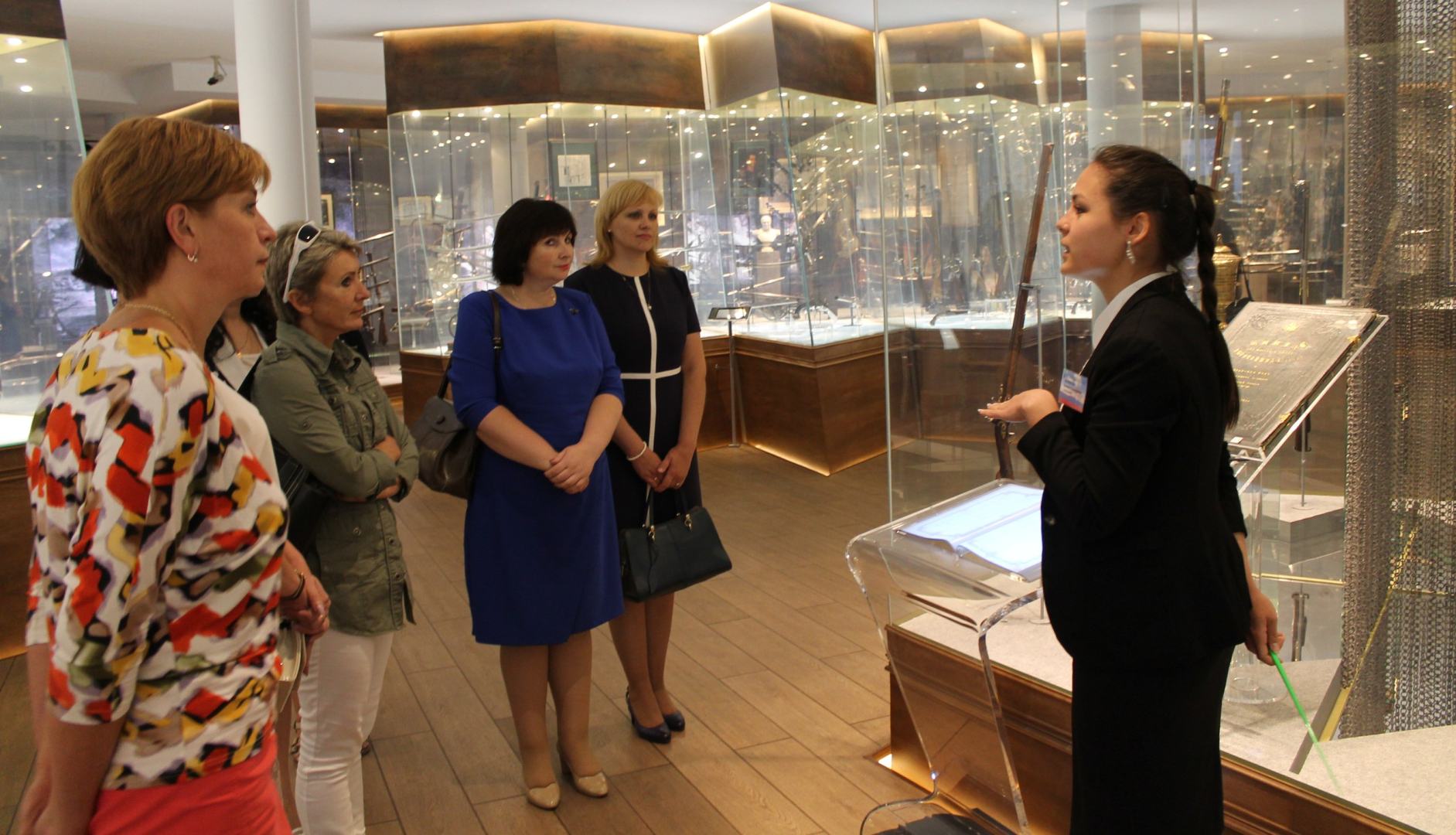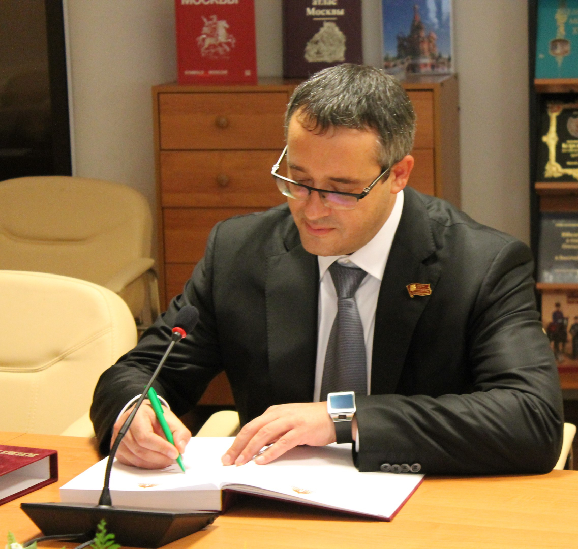 Руководитель Департамента национальной политики, межрегиональных связей и туризма города Москвы В.В. Черников поблагодарил директора музея оружия Н.И. Калугину за радушный прием и вручил библиотеке музея уникальные издания об истории Москвы и России.