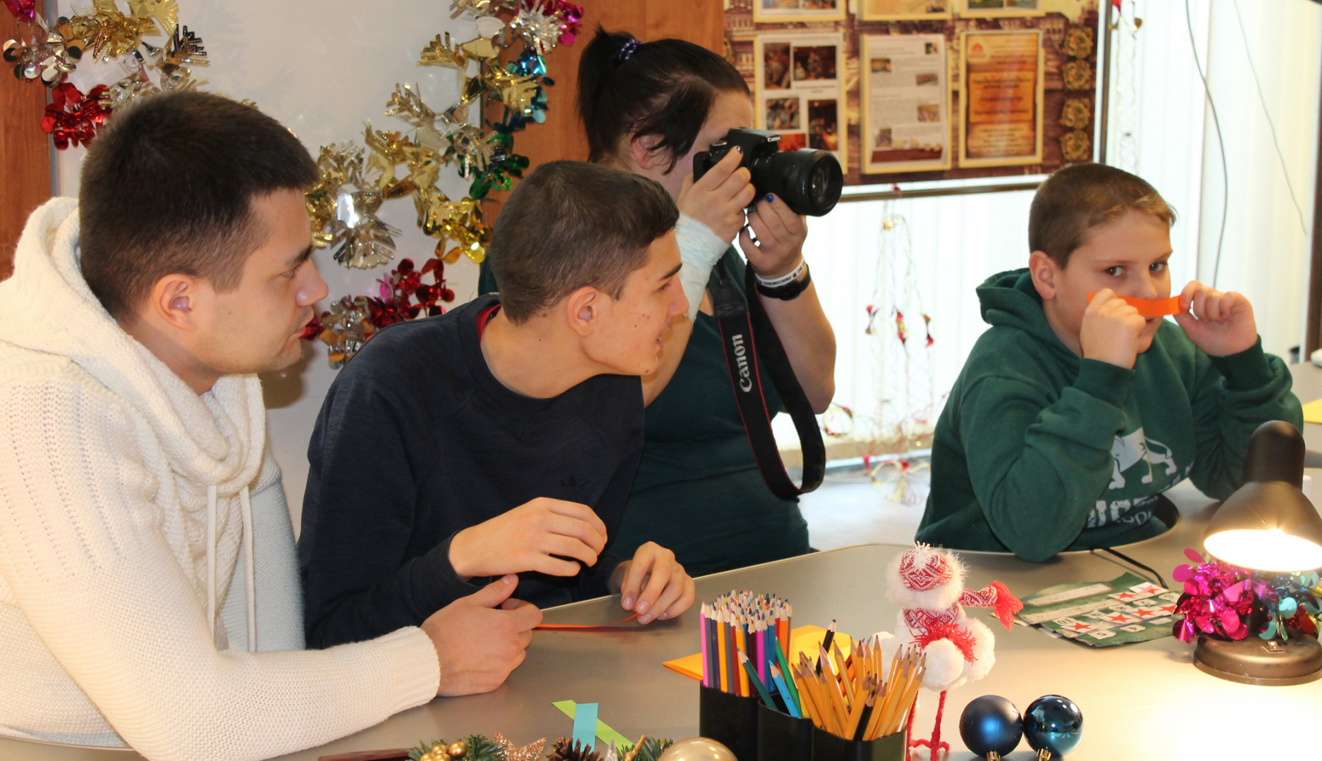 В рамках совместного социального проекта «Добро делать спешить должно!» музея оружия и Тульской региональной общественной организации содействия инвалидам детства с расстройствами аутистического спектра и их семьям «Маленькая страна - Мы есть!» в мастерской Деда Мороза особые дети, проявляя творчество и фантазию, создавали новогодние украшения и подарки друзьям.