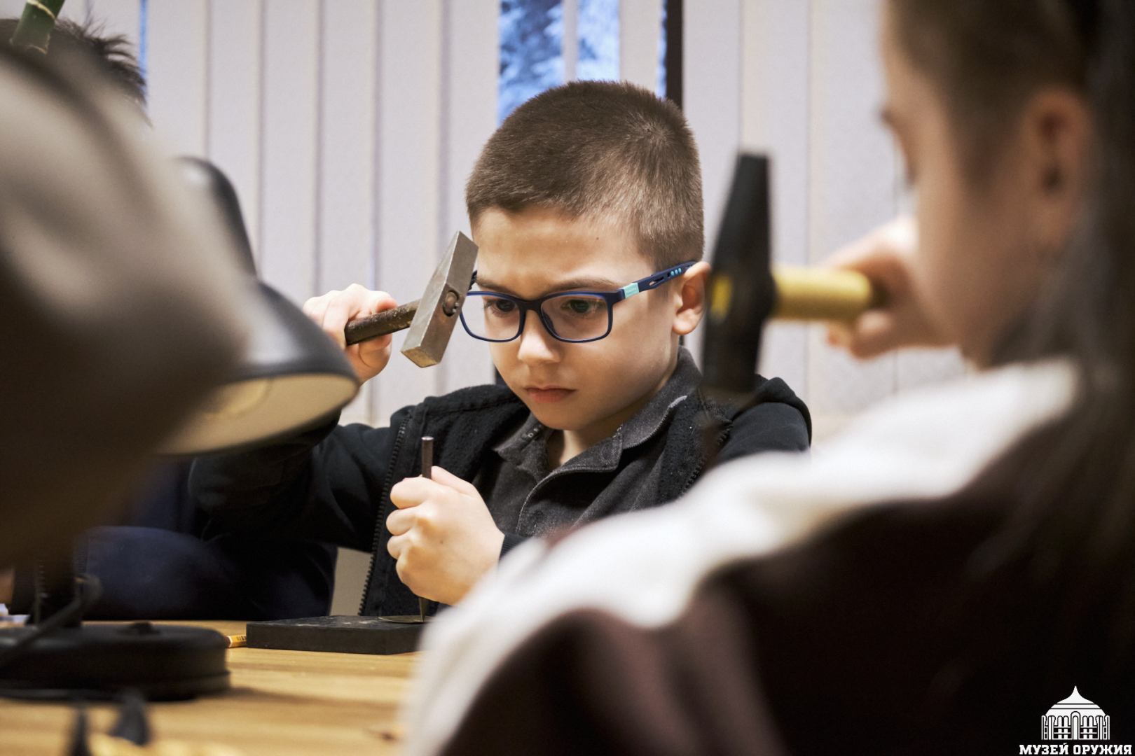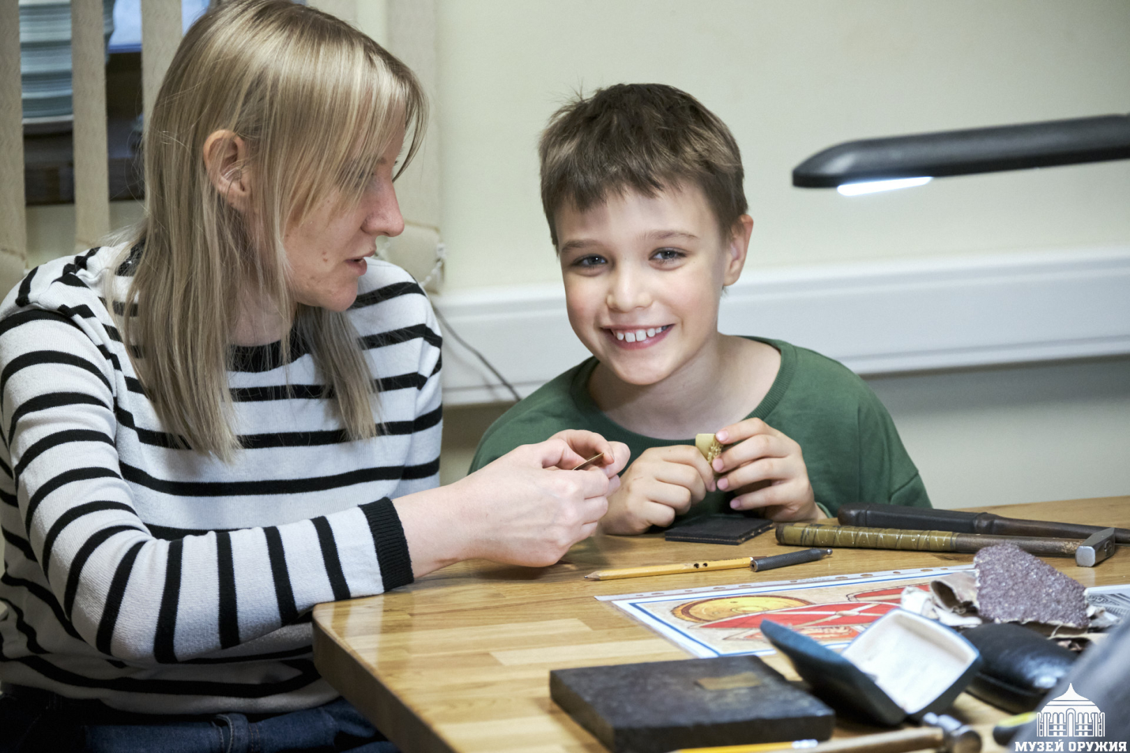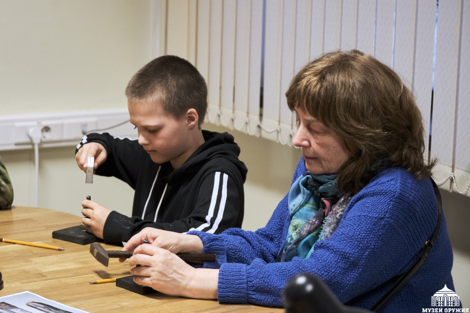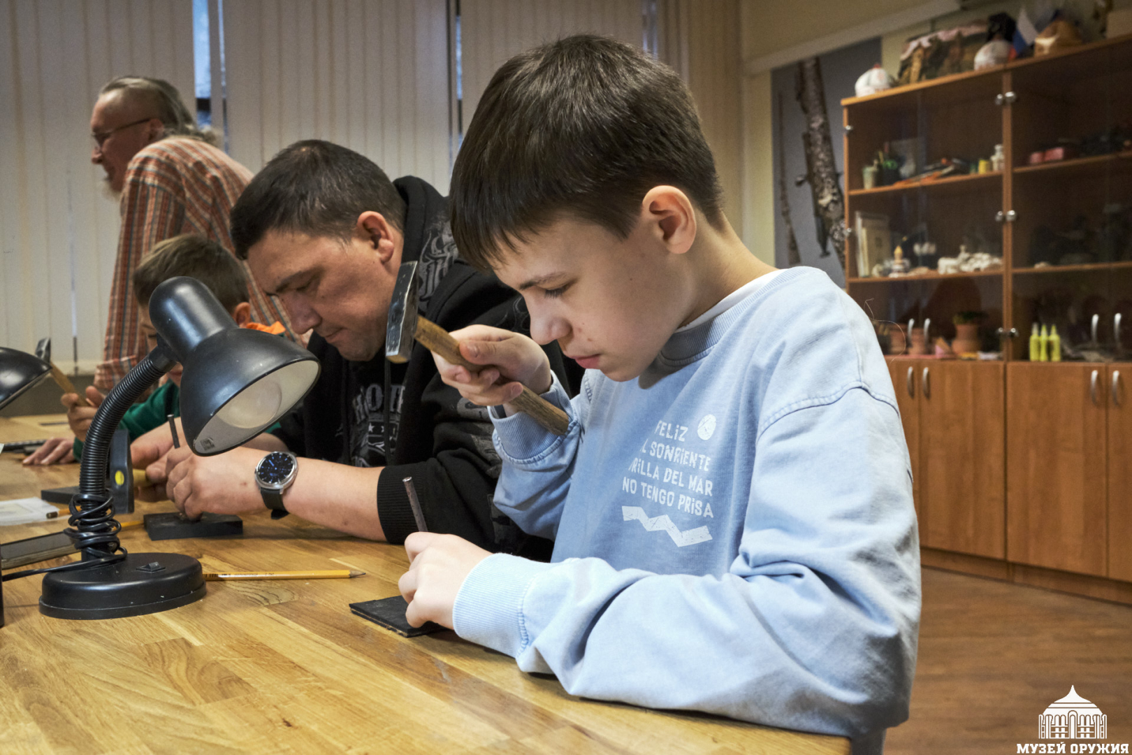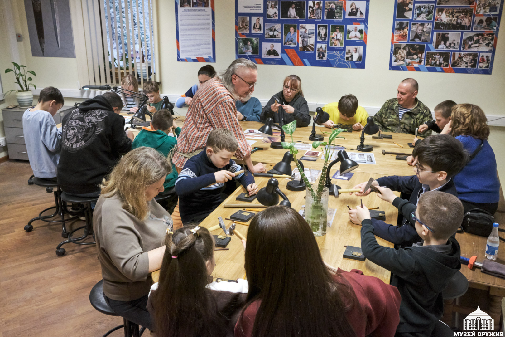 Тульский музей оружия при поддержке Центра по сопровождению участников специальной военной операции «Герой 71» организовал тематическое мероприятие для семей участников специальной военной операции: мастер-класс школы тульских мастеров по художественной отделке металла – чеканке.