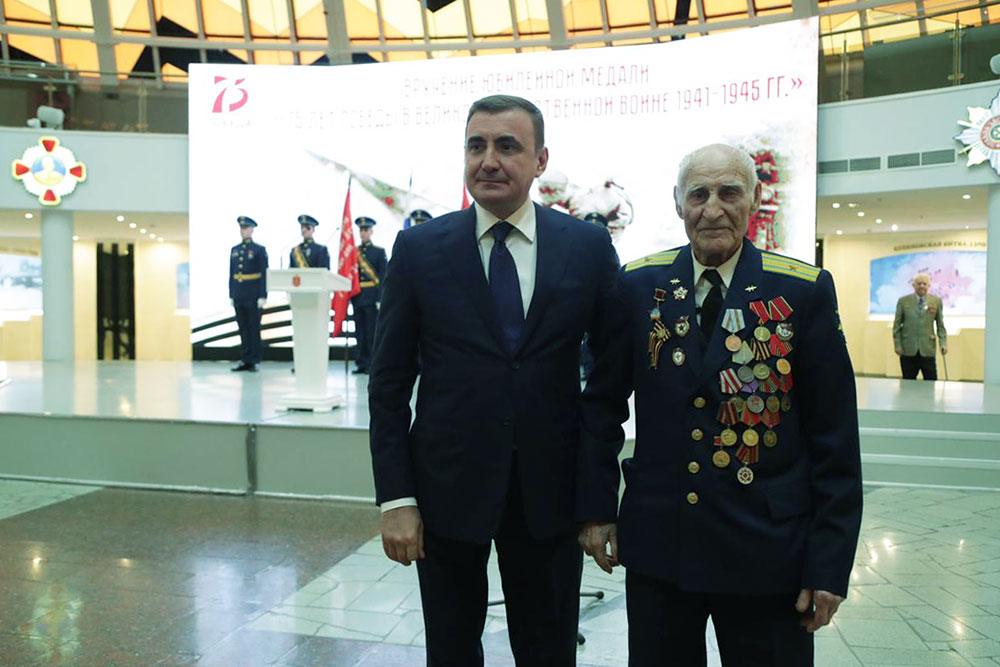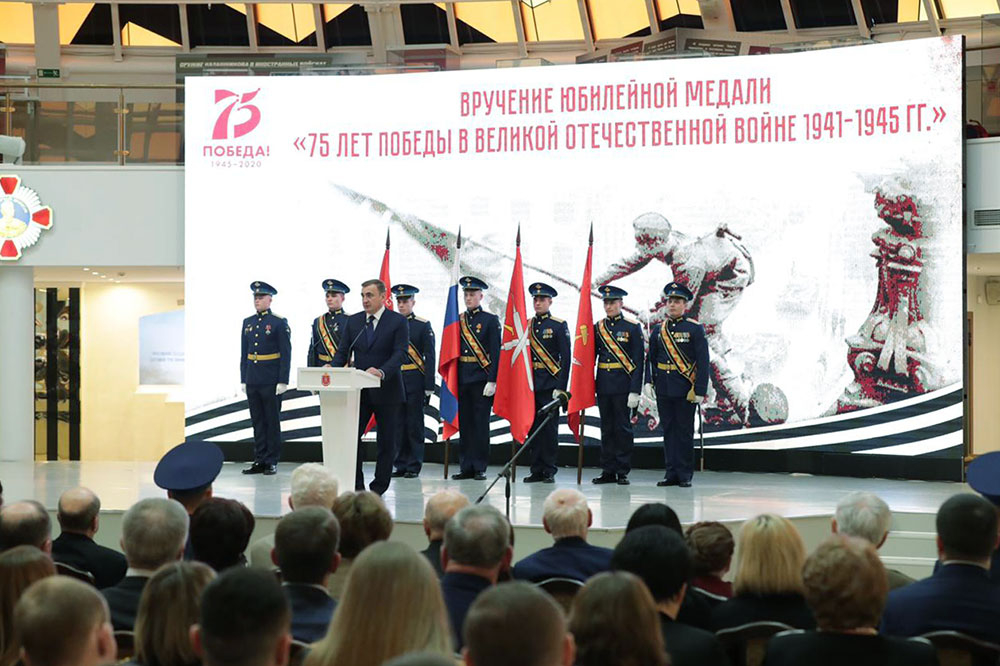 В соответствии с Указом Президента Российской Федерации В.В. Путина, отдавая дань глубокого уважения великому подвигу, героизму и самоотверженности, Губернатор Тульской области А.Г. Дюмин вручил ветеранам юбилейные медали «75 лет Победы в Великой Отечественной войне 1941-1945гг." в Зале Славы российского оружия. А.Г. Дюмин подчеркнул особую торжественность проведения мероприятия в музее оружия.