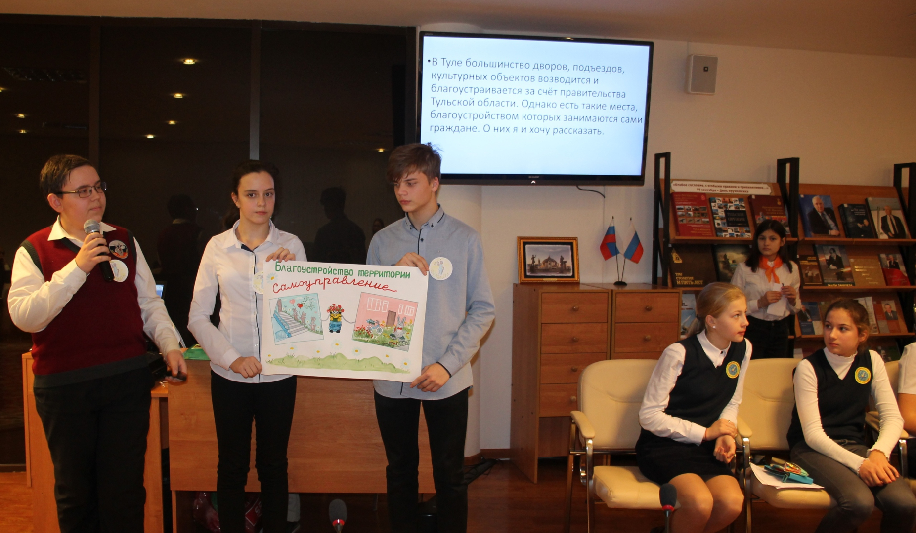 В Тульском музее оружия в День Конституции России знания Основного закона страны и свою гражданскую зрелость демонстрировали старшеклассники городских центров образования. Интеллектуальный конкурс «Я – гражданин Российской Федерации!» поставил перед молодыми туляками не простые задачи – разработать и защитить проект по теме «Местное самоуправление». Ребята анализировали состояние дел в сфере социального обслуживания населения в Туле, проблемы благоустройства родного города, работы общественного транспорта и, самое главное, активно предлагали свои пути их решения. Депутат Тульской городской Думы А.В. Гурьянов поблагодарил мальчишек и девчонок за активную гражданскую позицию и пообещал, что в своей депутатской деятельности будет искать пути решения выявленных ими проблем