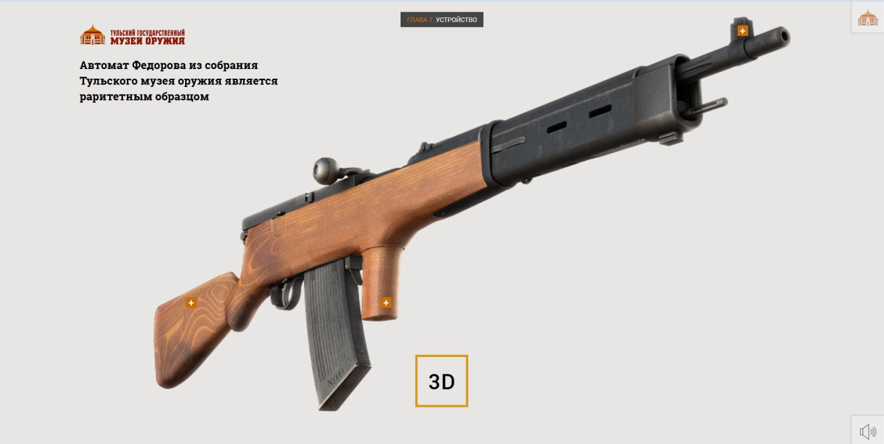 Интересуетесь оружием или военной историей? Спешите посетить виртуальный музей «Оружие героев» - http://heroes-arms.ru/ - эксклюзивный проект Тульского музея оружия и Министерства культуры России! На сайте можно увидеть культовое отечественное оружие с XIV до середины ХХ веков. Редкие экспонаты впервые воссозданы в формате 3D по эксклюзивным материалам нашего музея.