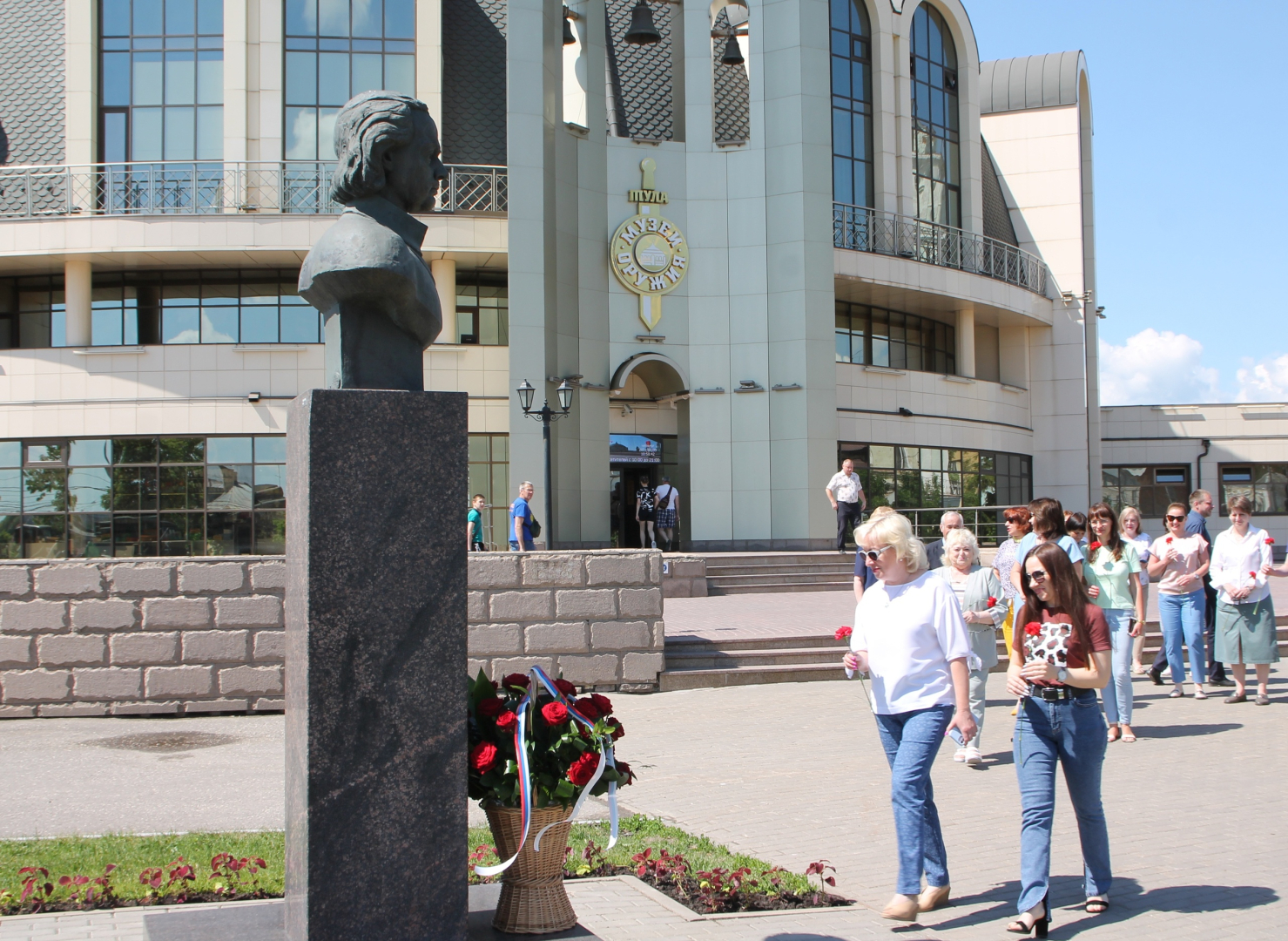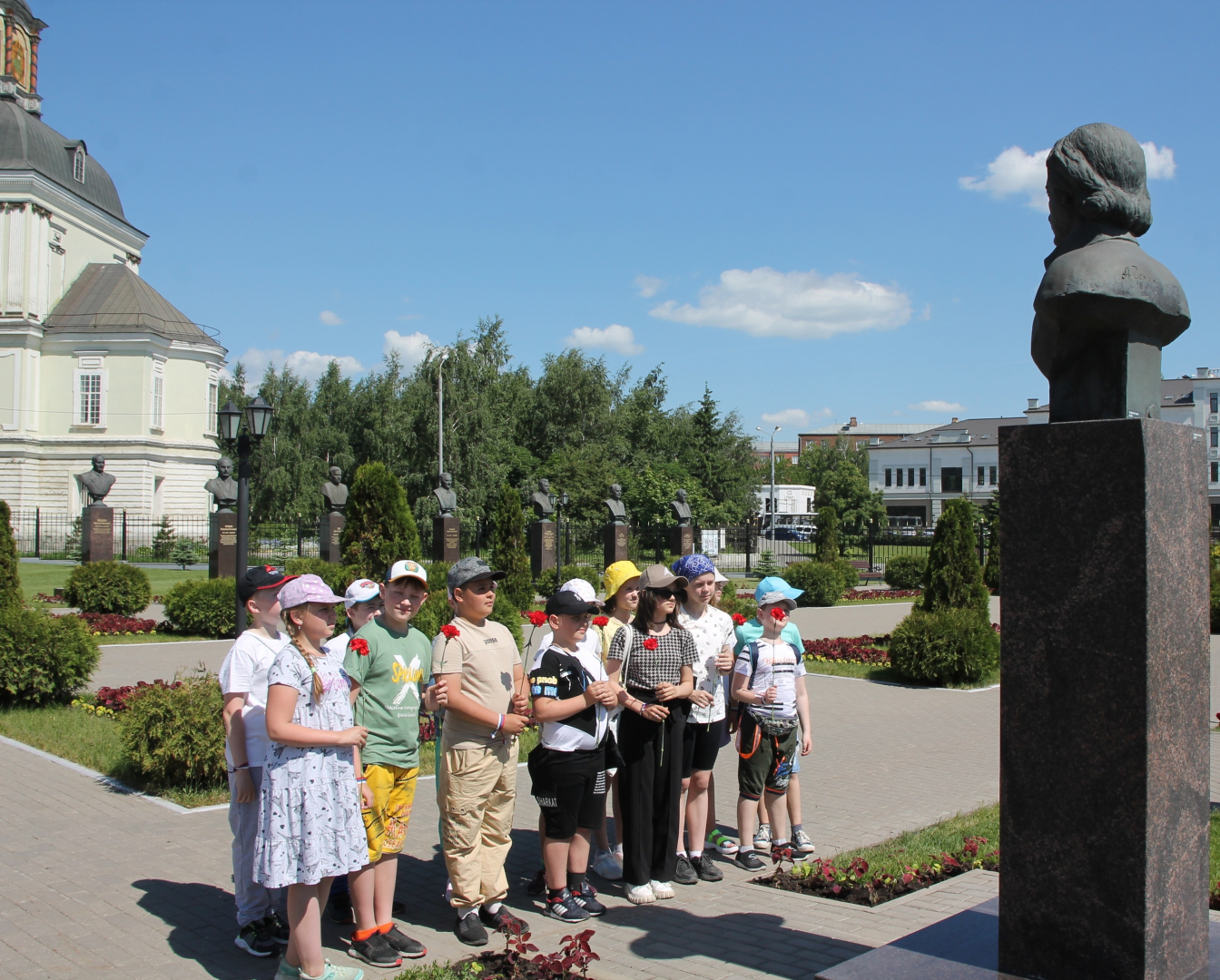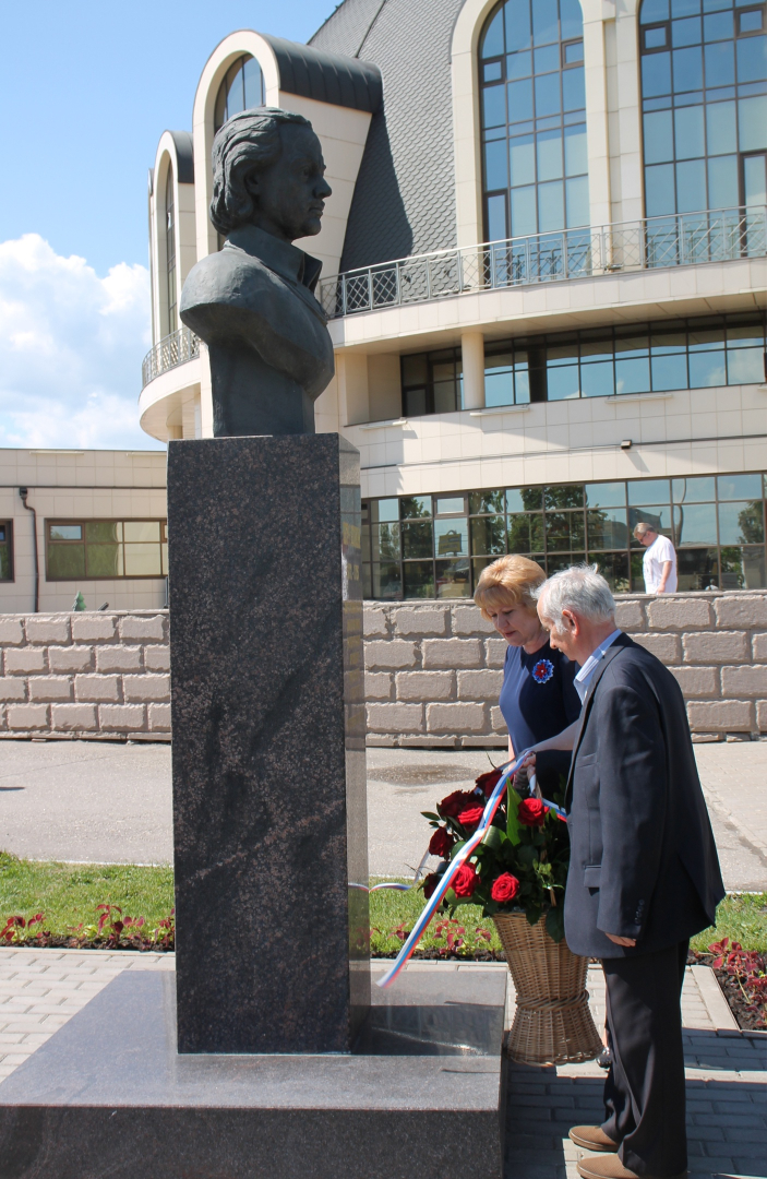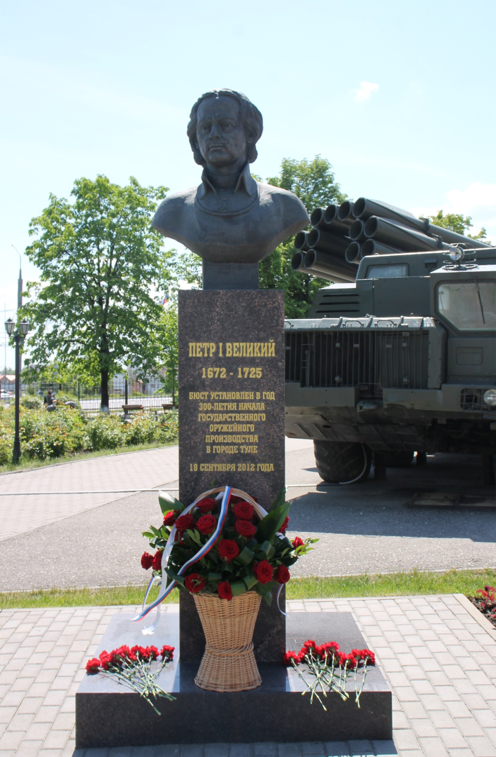В День 350-летия со дня рождения Петра Великого на Аллее Славы знаменитых оружейников города Тулы юные посетители и сотрудники Тульского музея орудия возложили цветы к бюсту Императора Всероссийского.