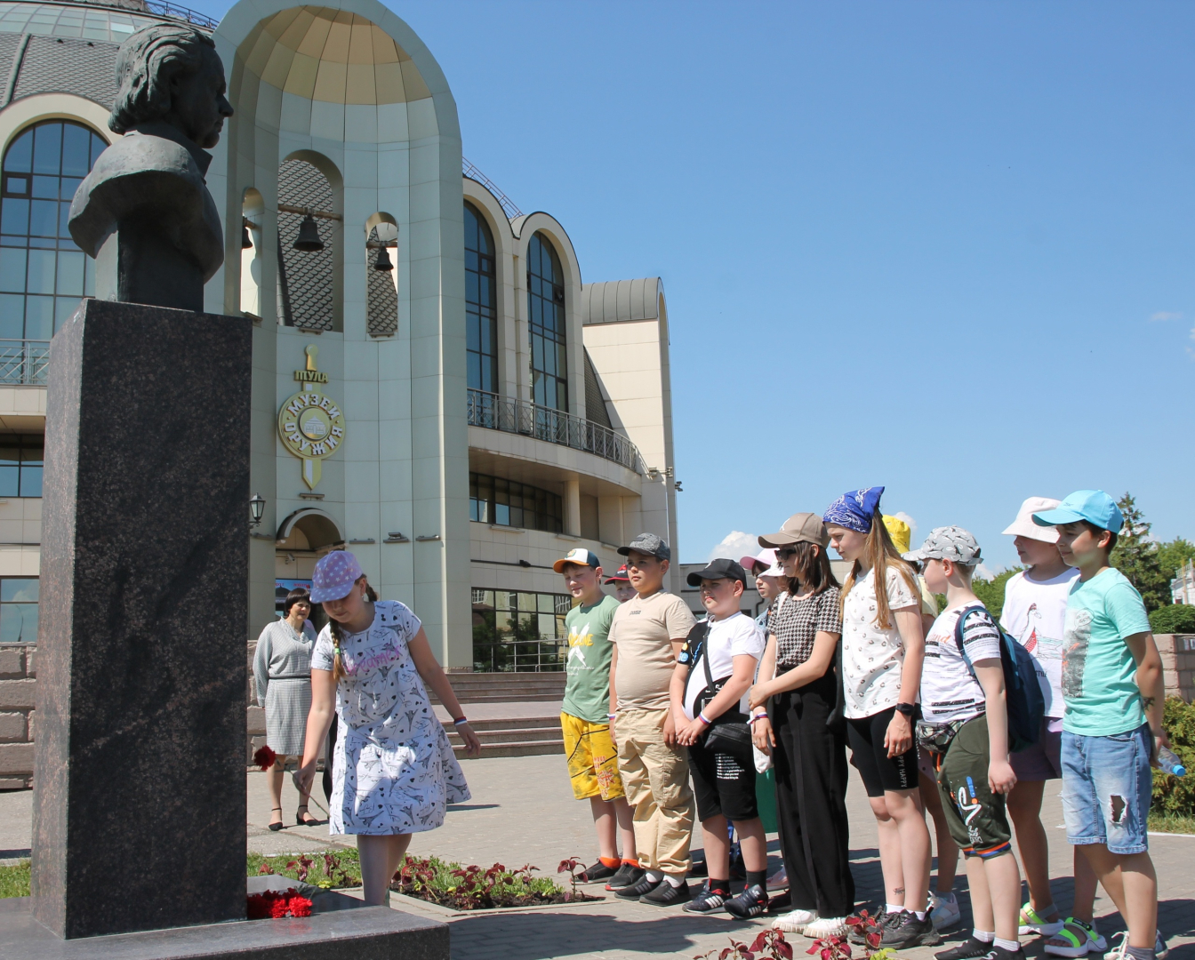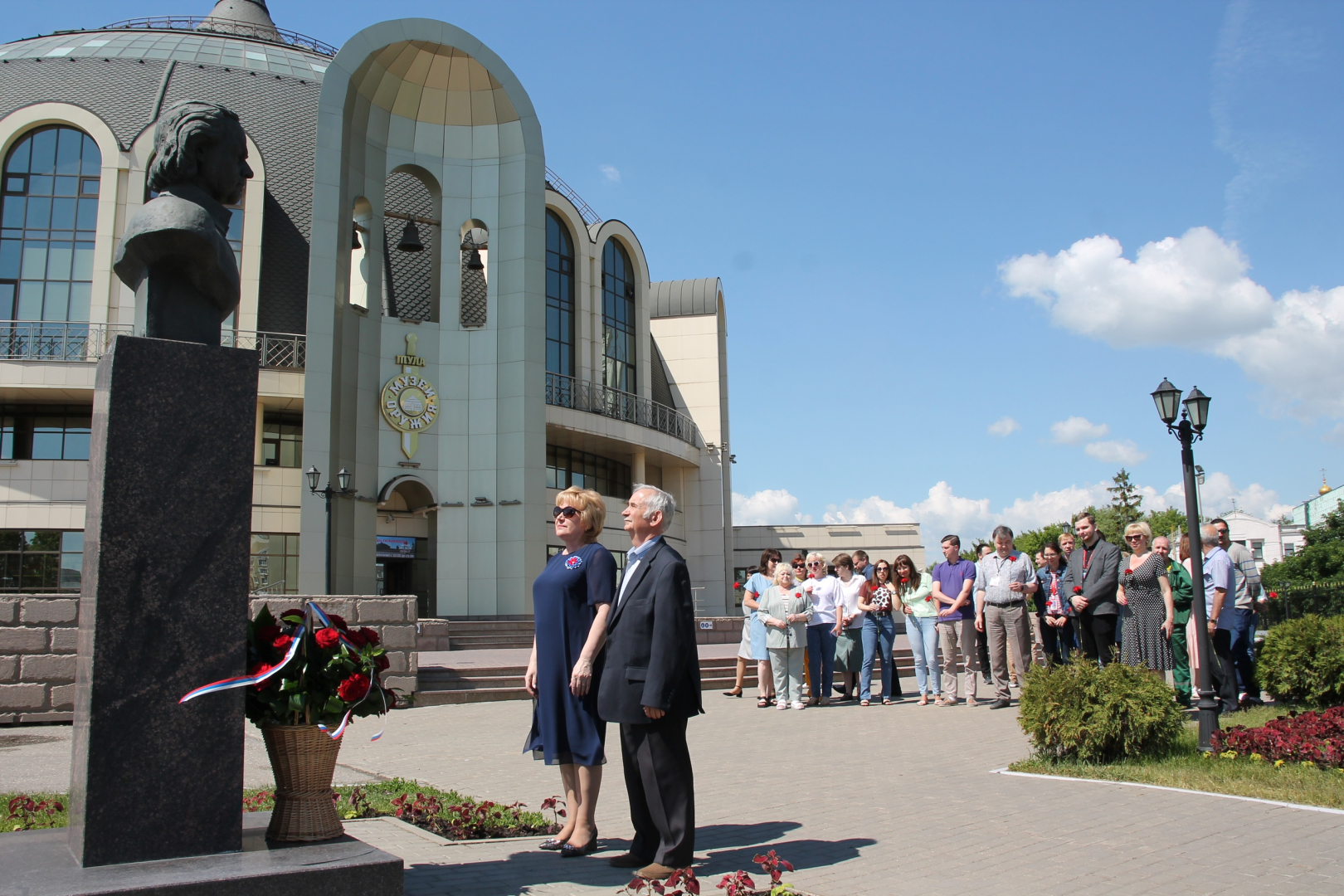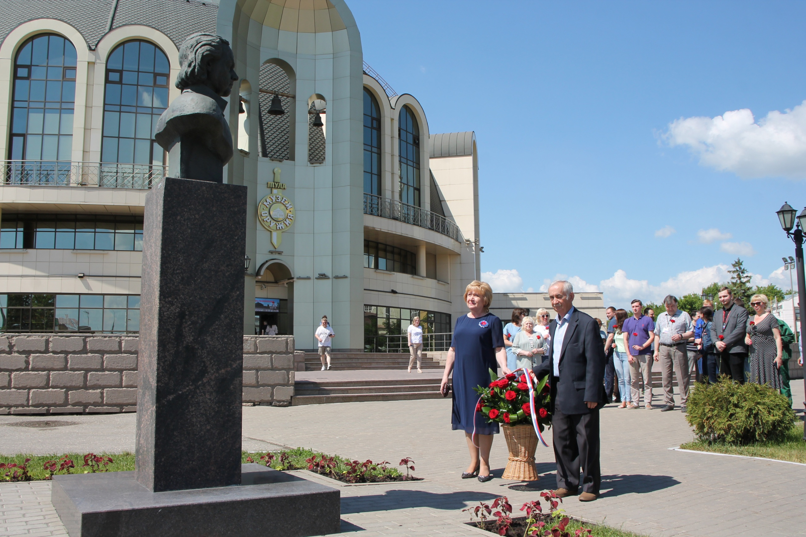 В День 350-летия со дня рождения Петра Великого на Аллее Славы знаменитых оружейников города Тулы юные посетители и сотрудники Тульского музея орудия возложили цветы к бюсту Императора Всероссийского.