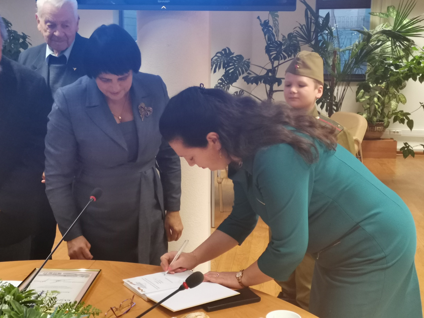 От имени руководства Императорского Тульского оружейного завода Леонид Сергеевич Фокин передал Благодарственное письмо Е.Г. Воропаеву «За мужество и бесконечный героизм, самоотверженный труд на благо Великой Победы в тылу».