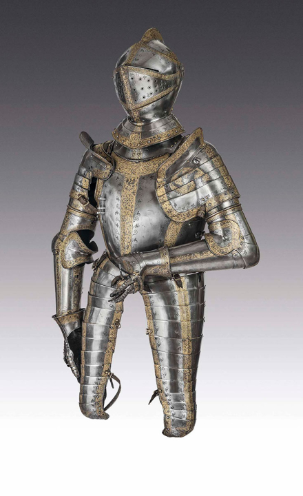Гарнитур полевых и турнирных доспехов короля Франции Франциска I – примечательный экспонат выставки «Королевские игры». Он был изготовлен в 1539-40 гг. известным мастером Йоргом Зойзенхофером в городе Инсбруке – оружейной столице Священной Римской империи.