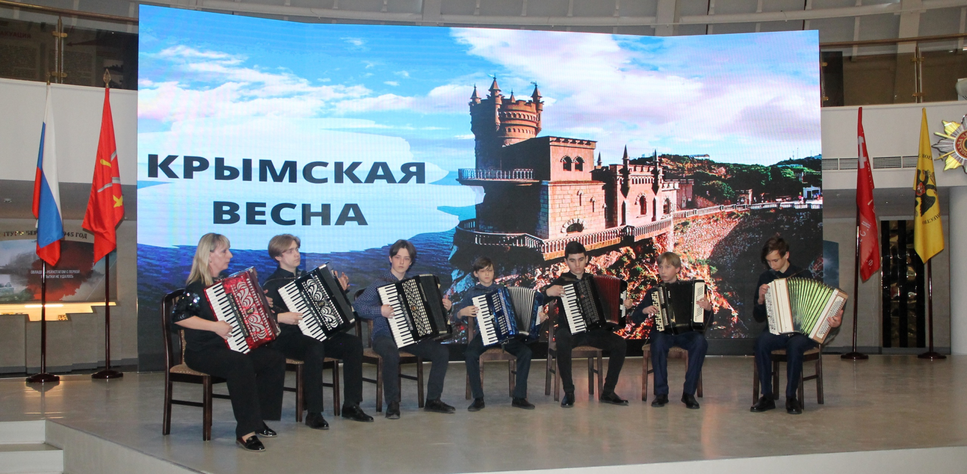 Сегодня в Зале Славы российского оружия Тульского государственного музея оружия Крымская Весна – Весна Надежды, Солидарности, Любви объединила активную, творческую, талантливую молодежь, ветеранов войны и труда, представителей общественных организаций Тульской области.