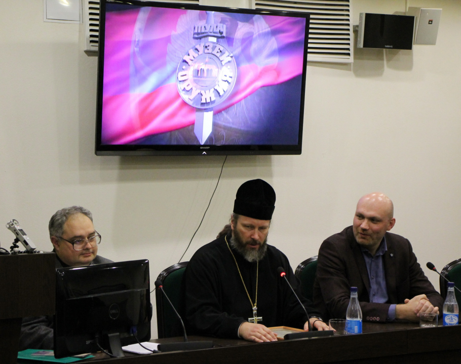 Сегодня состоялась дискуссия о деятельности русского философа и публициста, члена-корреспондента Петербургской Академии наук А.С. Хомякова, в которой приняли участие доктор философских наук, ведущий научный сотрудник Института философии РАН Корсаков С.Н., проректор Института философии РАН Черняев А.В., ректор Тульской духовной семинарии игумен Евфимий, заведующая музеем-усадьбой А.С. Хомякова Сторожко О.М.
