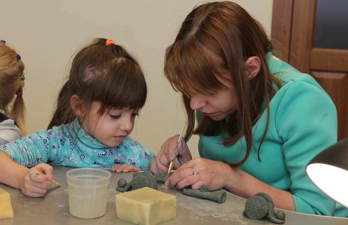 Клуб «Малышки на миллион» уже не первый раз проводит мероприятия в музее оружия. Сегодня вместе с родителями самые маленькие посетители осваивали элементы технологии художественной керамики на культурно-образовательной программе «Шедевры тульских мастеров».
