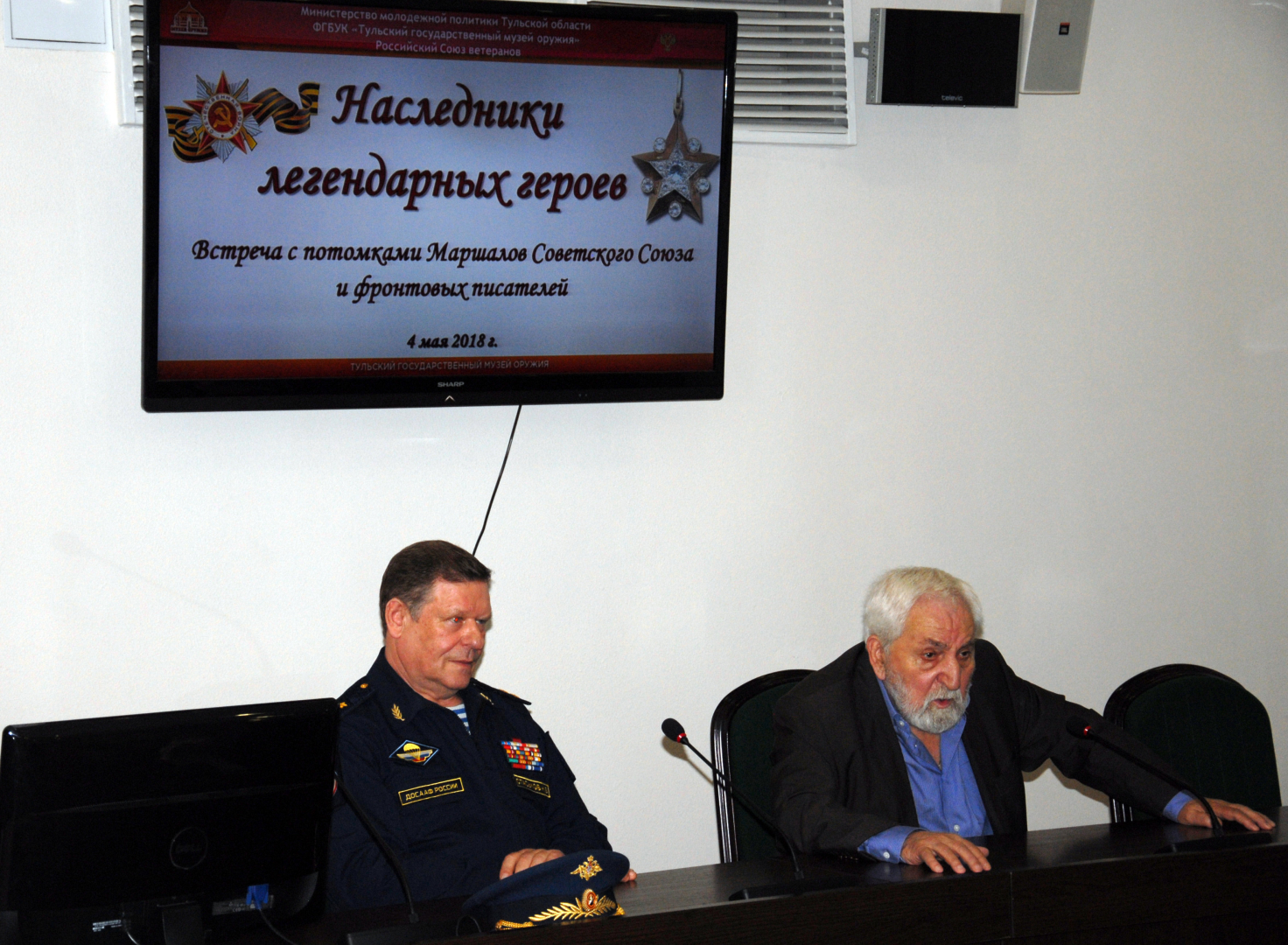 Встреча с потомками Маршалов Советского Союза и фронтовых писателей состоялась в музее оружия при поддержке Министерства молодежной политики Тульской области и Российского союза ветеранов.