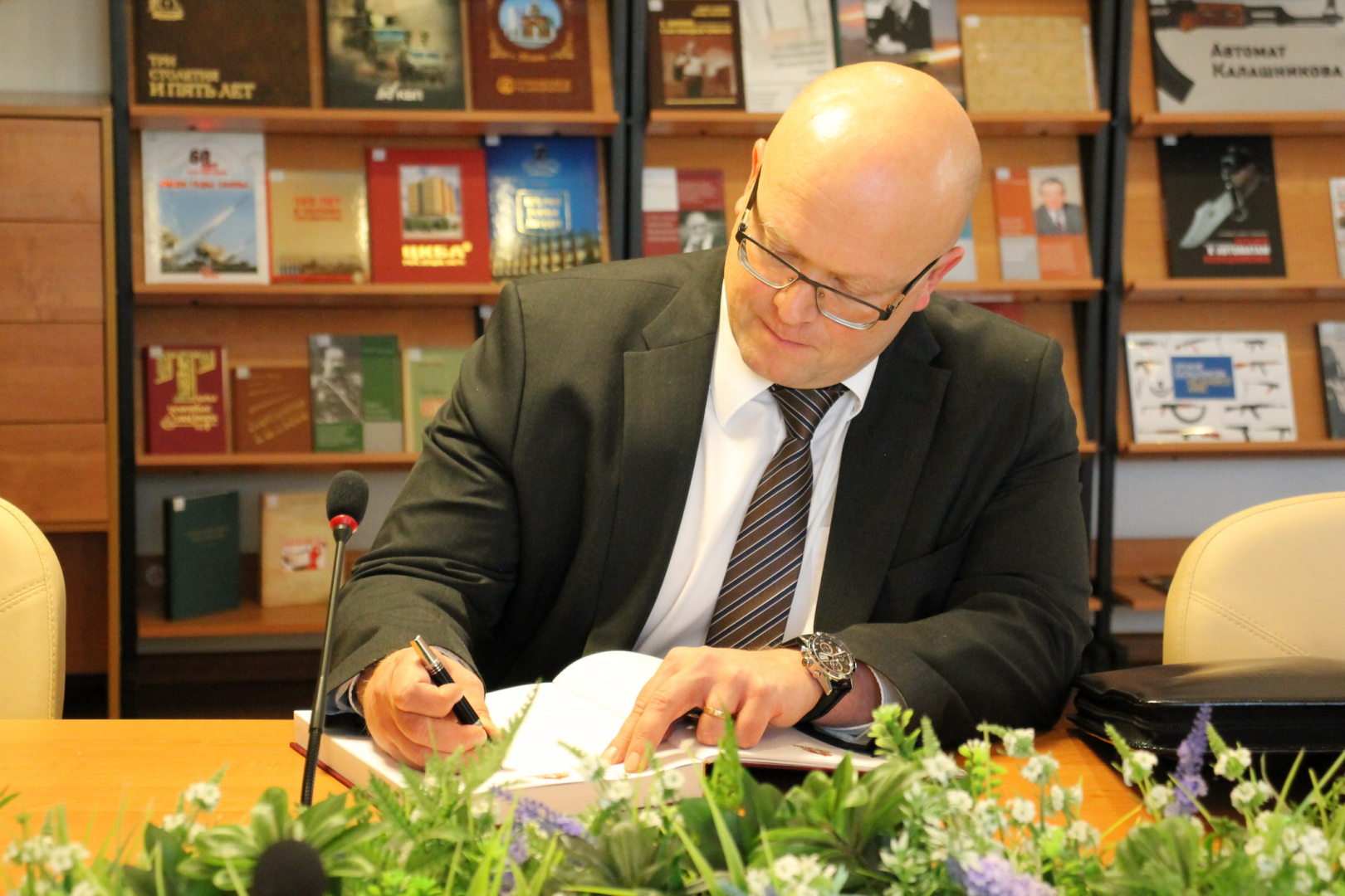 Сегодня музей оружия посетил Чрезвычайный и Полномочный Посол Финляндии в Российской Федерации Микко Хаутала. Господин М. Хаутала поблагодарил сотрудников «за теплый прием» и отметил «профессиональное руководство музеем оружия в Туле».