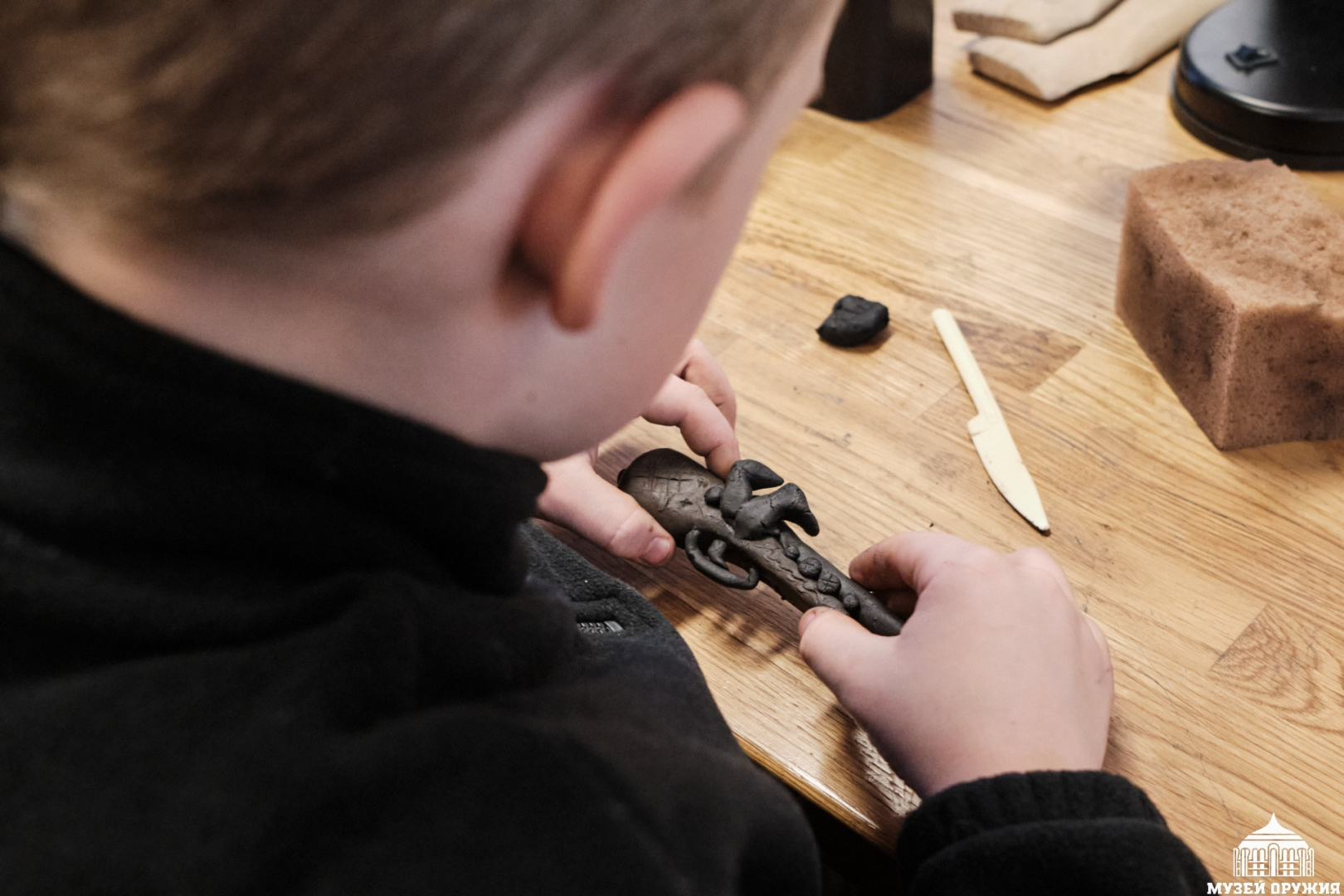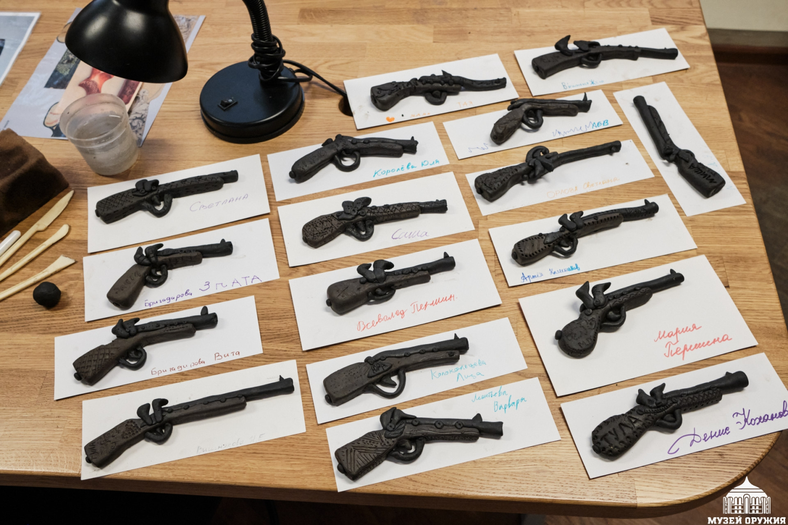 Под чутким руководством специалистов гости создавали сувенирные ударно-кремневые ружья из глины, окунувшись в атмосферу старинных традиций и мастерства.