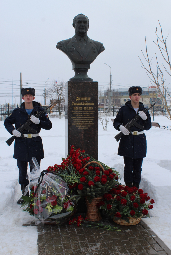 Сегодня на Аллее Славы знаменитых оружейников города Тулы состоялась торжественная церемония возложения цветов к бюсту Геннадия Алексеевича Денежкина в рамках памятных мероприятий, посвященных 90-летию со дня его рождения.