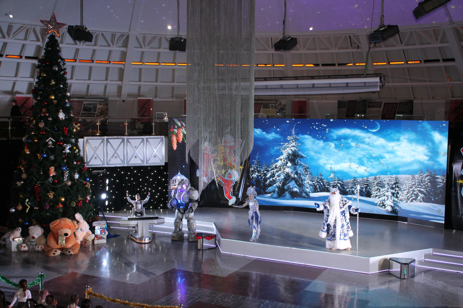 Особенно поразило зрителей появление на новогоднем празднике настоящего робота Акинфия и сказочного героя – гигантского робота – защитника.