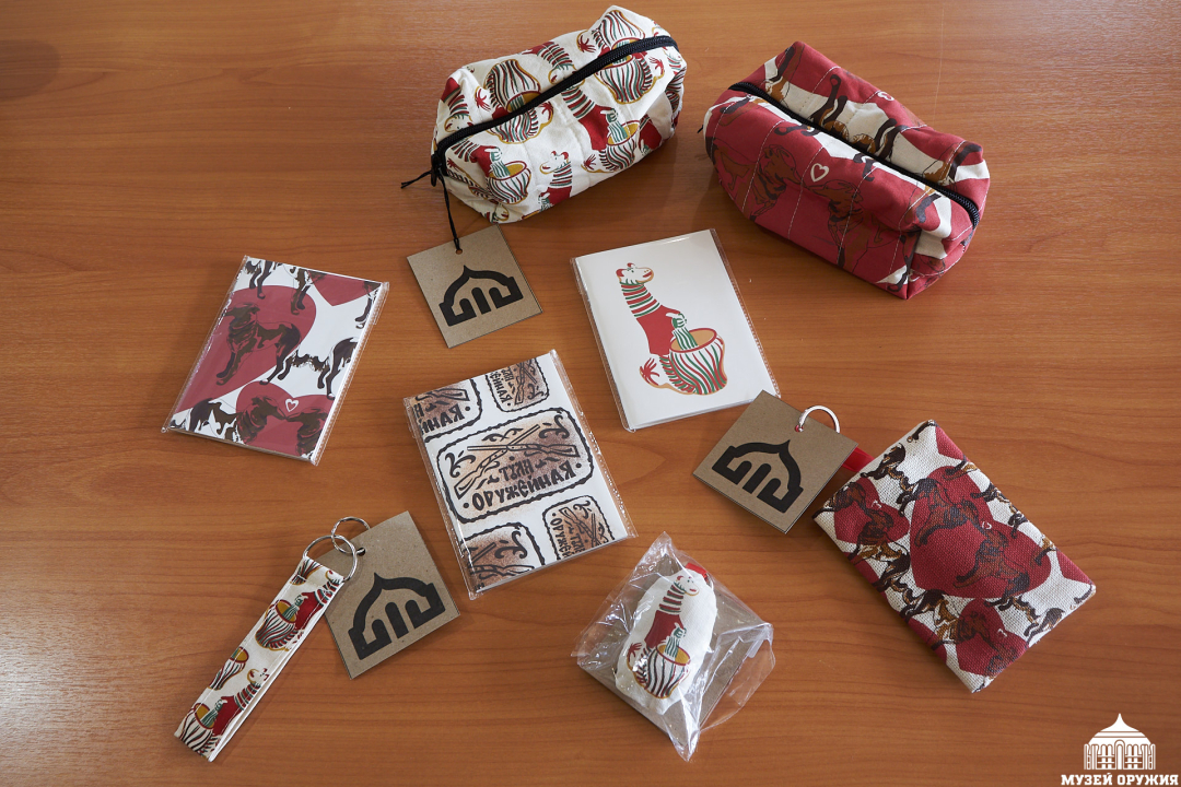 Вместе с Мастерской печатной графики, ручной вышивки и печати на текстиле «Амма» подготовлена серия оригинальных и практичных аксессуаров, дизайн которых вдохновлен достопримечательностями Тулы и нашей коллекцией. Шопперы, косметички, очечники, блокноты, ремувки, брелоки, кошельки - найти идеальный подарок для себя и близких, хранящий частичку истории оружейной Тулы, сможет каждый.