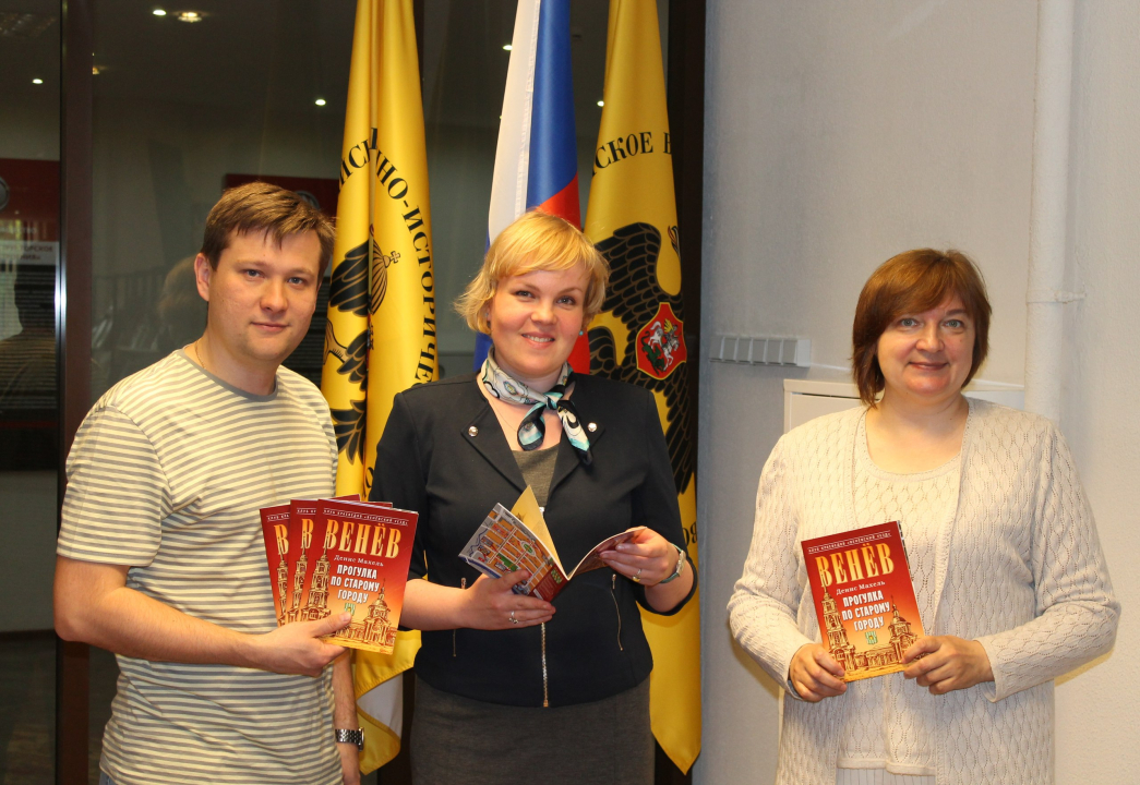 Сегодня фонды нашей музейной библиотеки пополнились замечательным изданием — «Венев. Прогулка по старому городу». Подарок передал автор книги — председатель клуба краеведов «Веневский уезд», методист Веневского краеведческого музея Денис Махель.