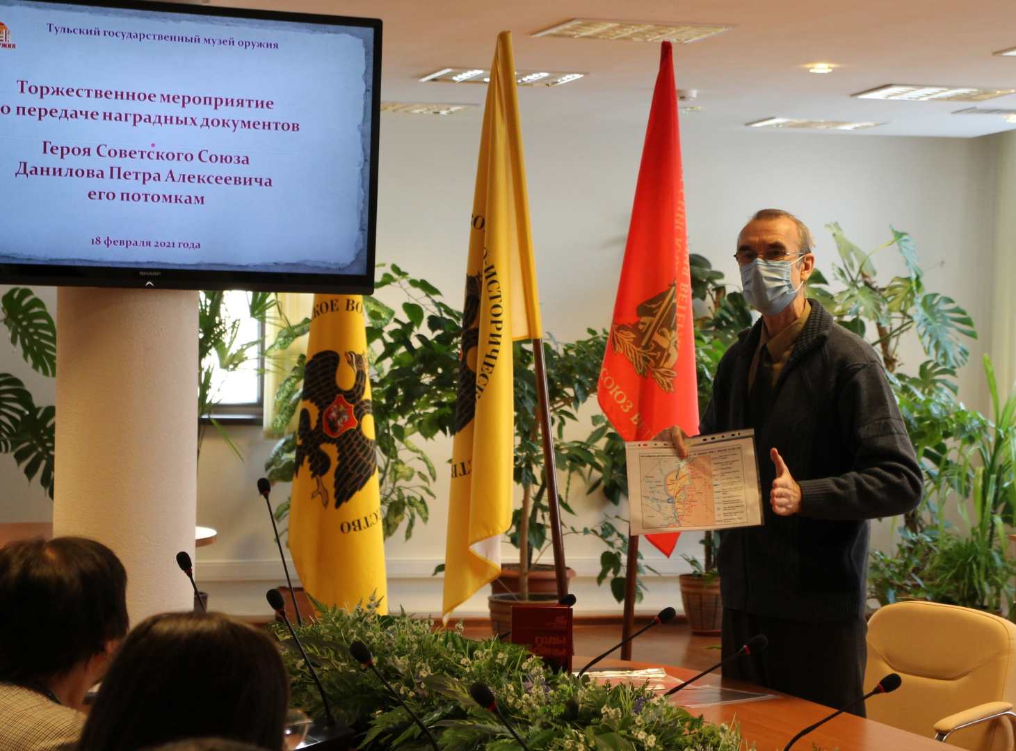 77 лет спустя в Тульском музее оружия наградные документы майора Данилова были переданы его внуку-подполковнику Данилову В.Е.