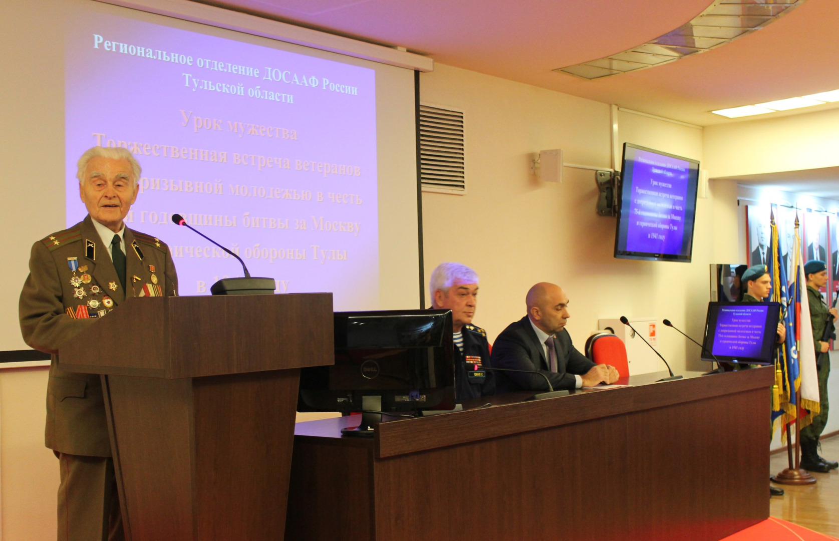 Урок мужества, посвященный 75-й годовщине героической обороны Тулы в 1941 году, состоялся в музее оружия. В мероприятии приняли участие заместитель председателя правительства Тульской области – министр молодежной политики Тульской области Ю.В. Вепринцева, председатель Тульского отделения ДОСААФ России Ю.Г. Левченко, ветераны Великой Отечественной войны и боевых действий, курсанты школ ДОСААФ. Сохранение неразрывной связи поколений, глубокая признательность ветеранам, стремление молодежи достойно нести знамя славных побед и боевых традиций Отечества – главные итоги этой встречи.
