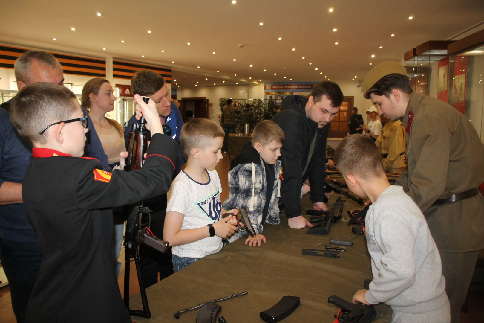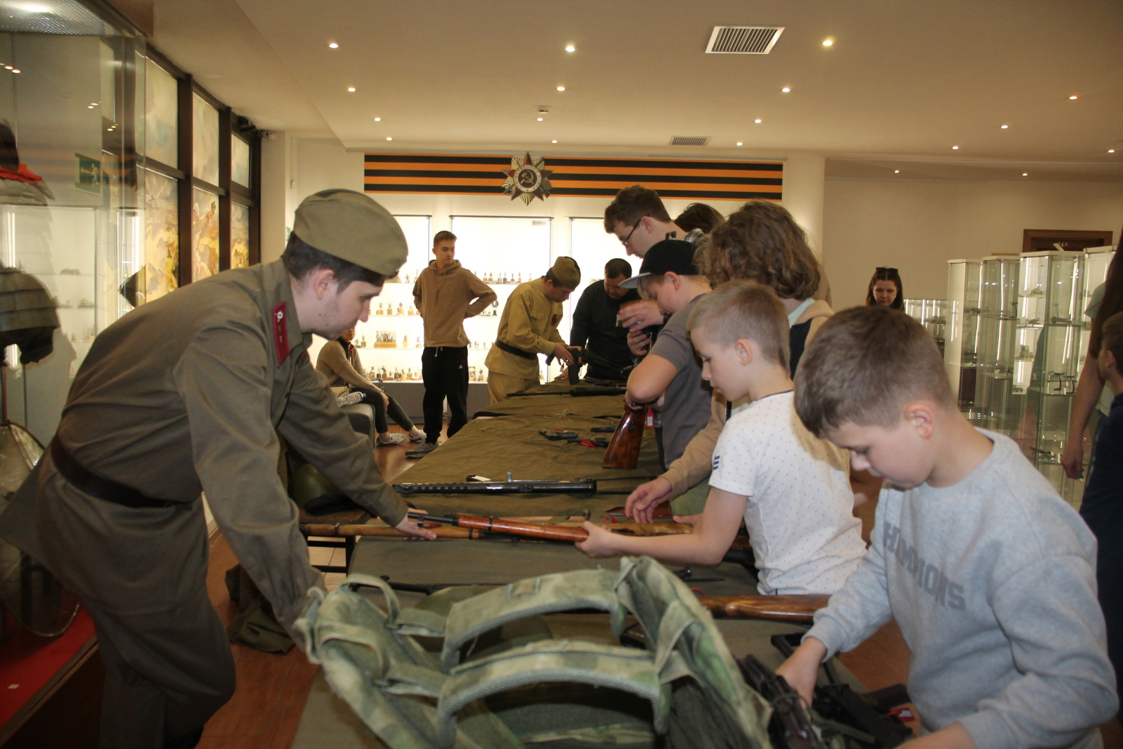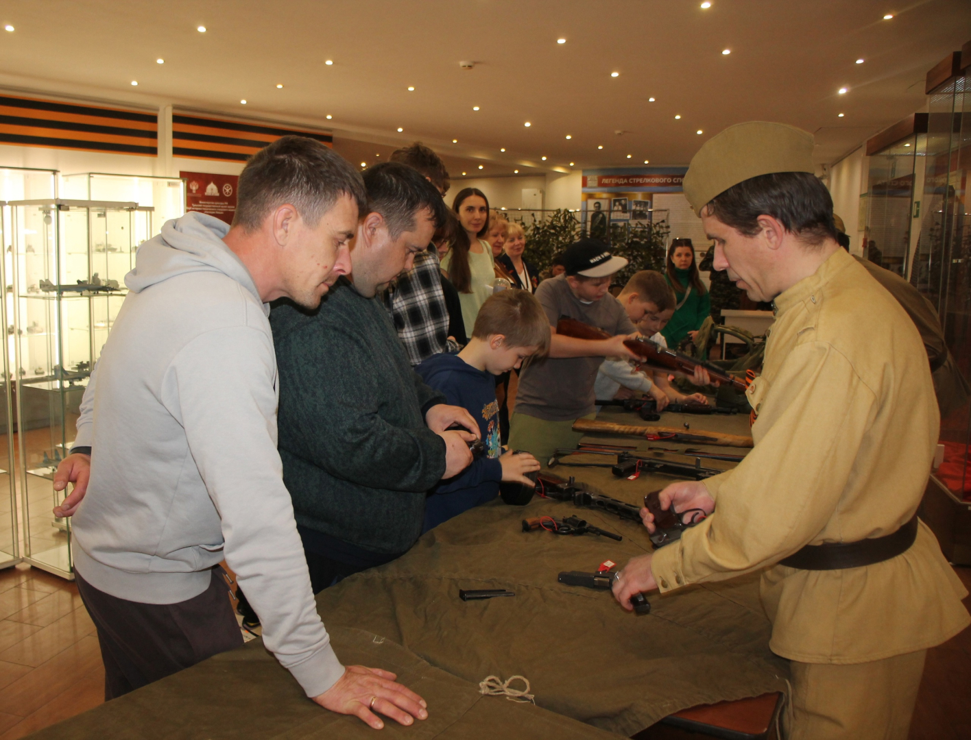 Сегодня гости музея очень активно участвуют в мастер-классе «Стрелковое дело» по разборке – сборке современных образцов стрелкового вооружения.