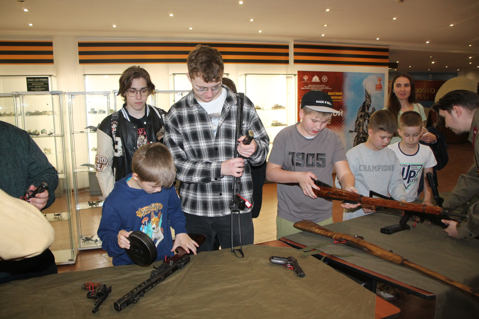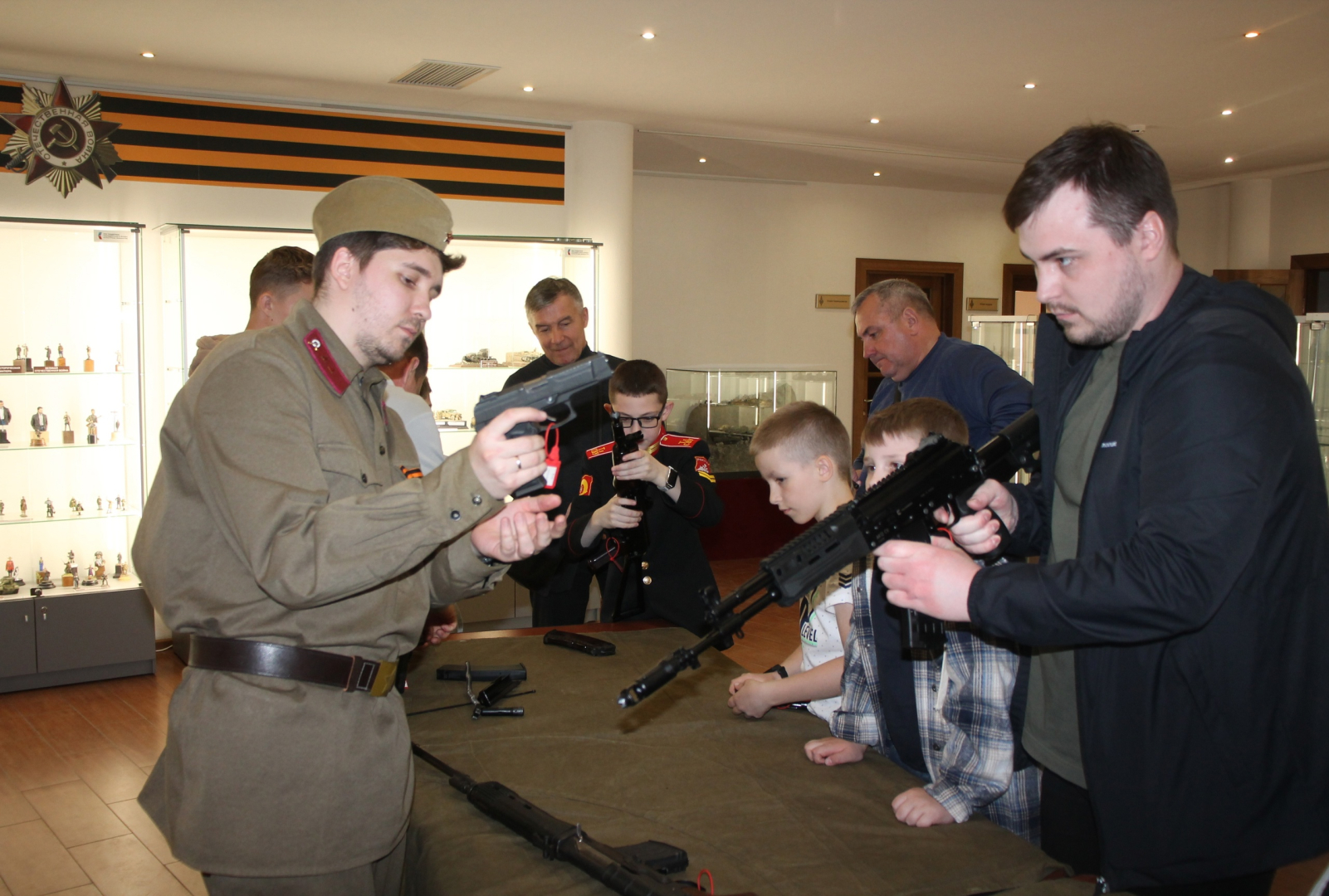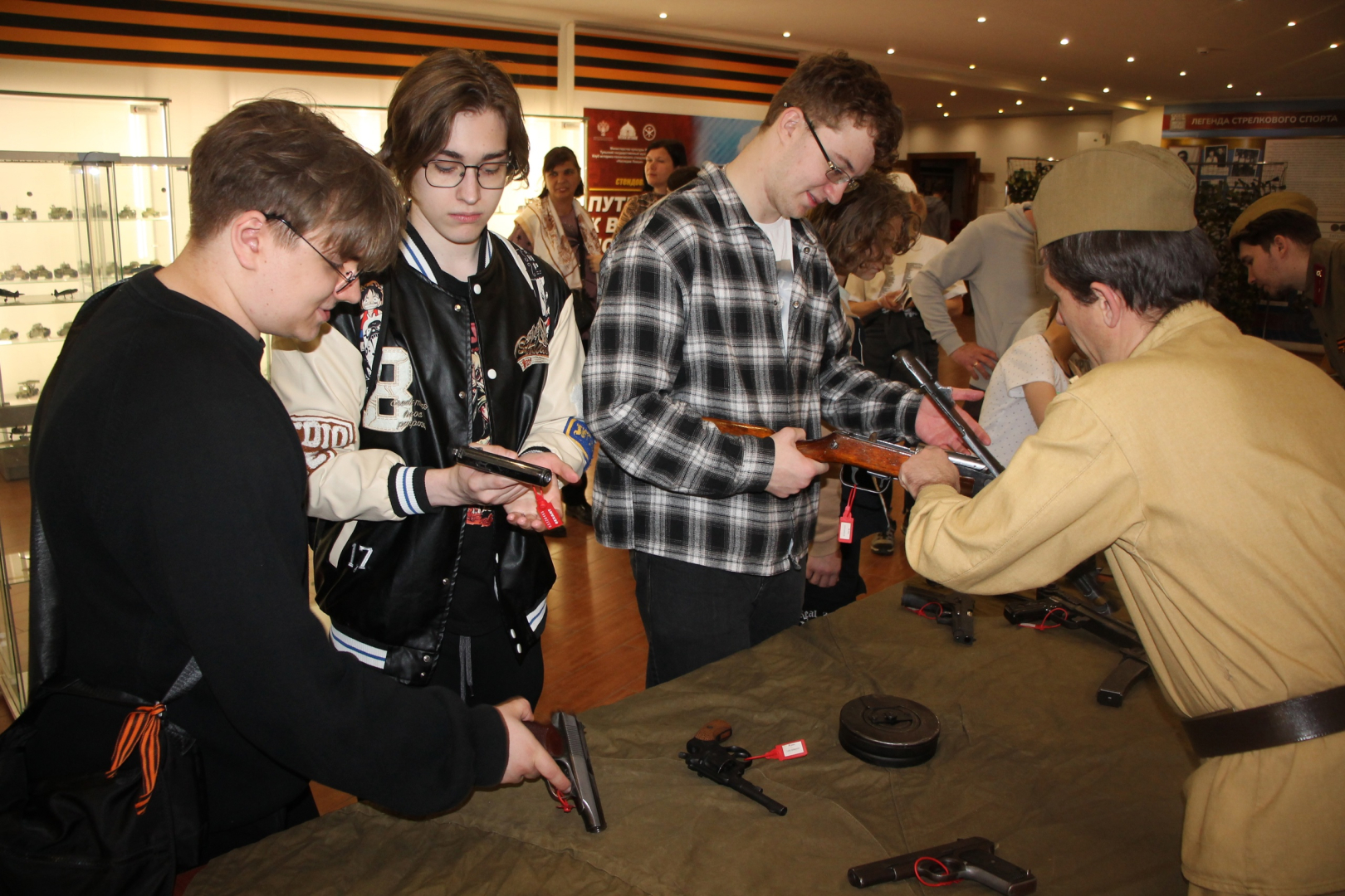 Сегодня гости музея очень активно участвуют в мастер-классе «Стрелковое дело» по разборке – сборке современных образцов стрелкового вооружения.