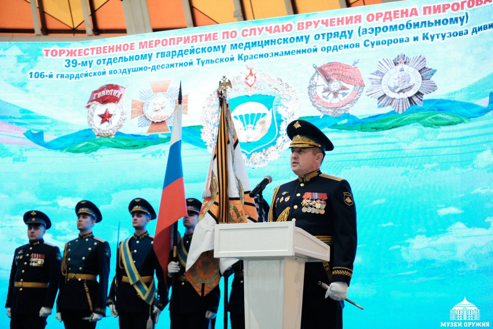 Сегодня в Зале Славы российского оружия Тульского государственного музея оружия состоялось торжественное мероприятие по случаю награждения 39-го отдельного гвардейского медицинского отряда (аэромобильного) орденом Пирогова.