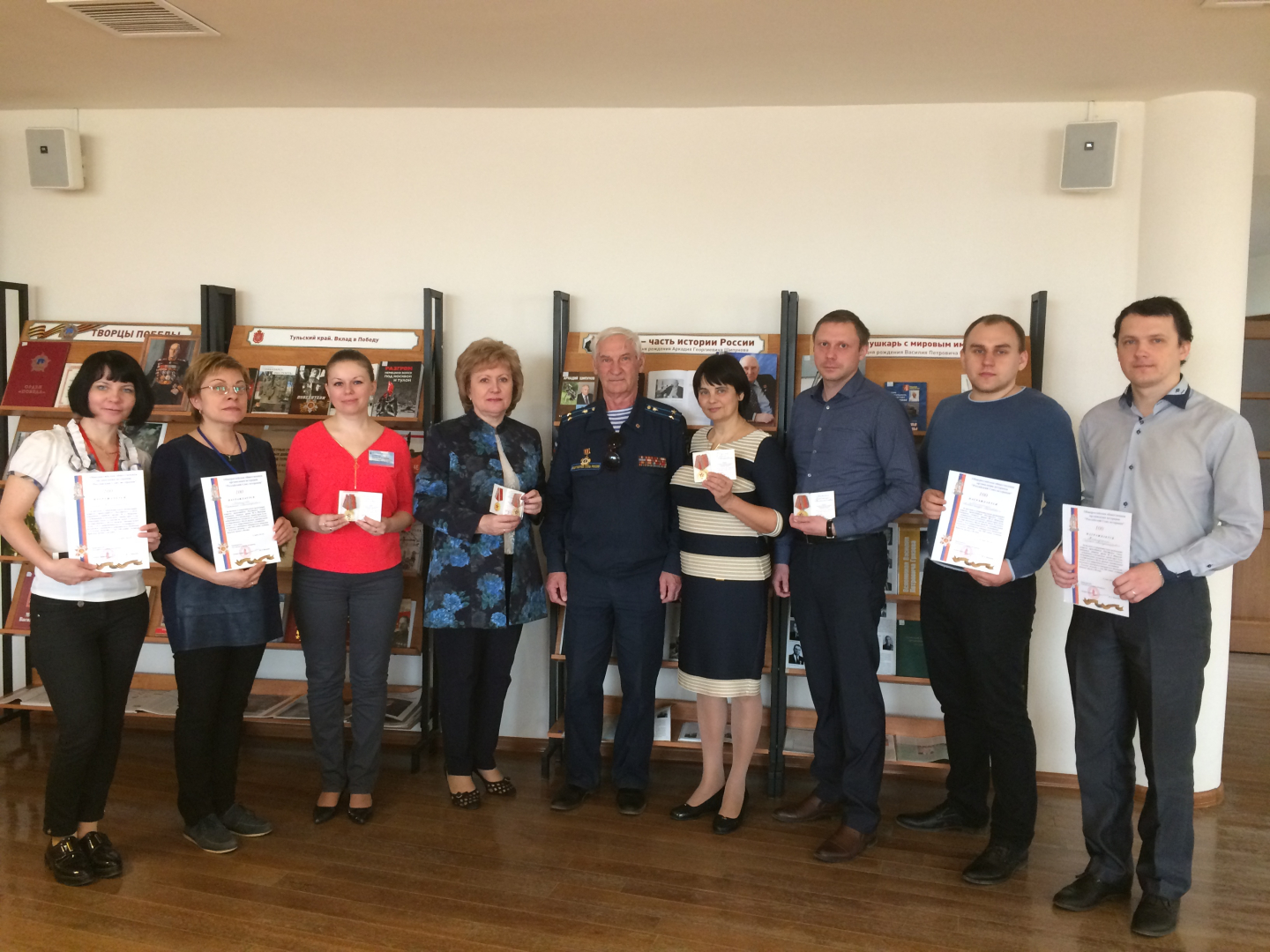 Сегодня председатель Тульской региональной организации Общероссийской общественной организации ветеранов войны и военной службы В.Г.Выродов по поручению Председателя Российского союза ветеранов, генерала армии М.А. Моисеева торжественно вручил юбилейные памятные медали «100 лет Рабоче-крестьянской Красной Армии и флоту» и почётные грамоты Российского Комитета ветеранов группе сотрудников музея оружия за вклад в патриотическое воспитание молодёжи.