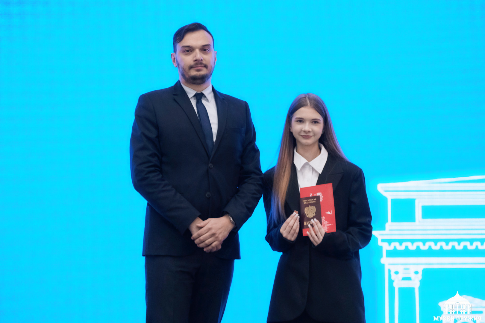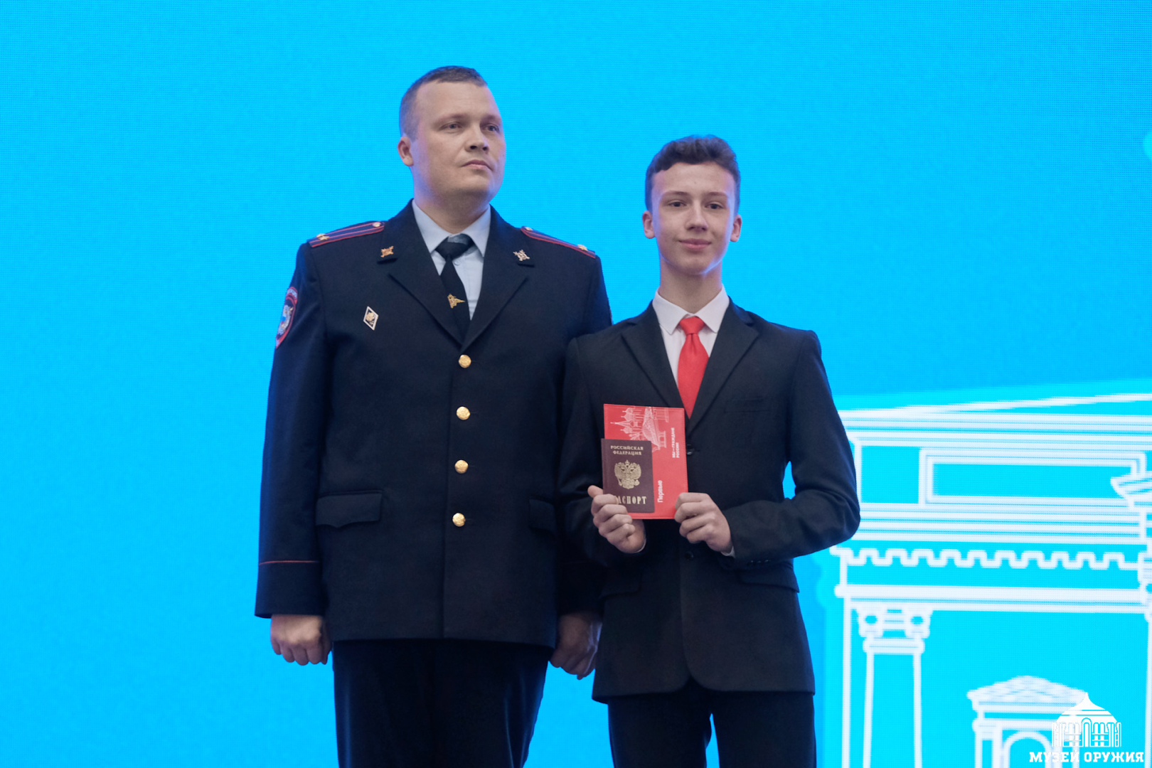 В Зале Славы российского оружия первый и основной личный документ 106 молодым жителям региона, имеющим особые заслуги в учебе, спорте, творчестве, общественной деятельности, вручили председатель Молодежного совета музея оружия Я.Соловьев, депутат Тульской городской Думы П.В. Астафьев; сотрудник УМВД России по Тульской области, подполковник полиции О.В. Колодкин; заместитель начальника управления отдела по вопросам миграции по городу Туле, подполковник полиции А.В. Гусев.