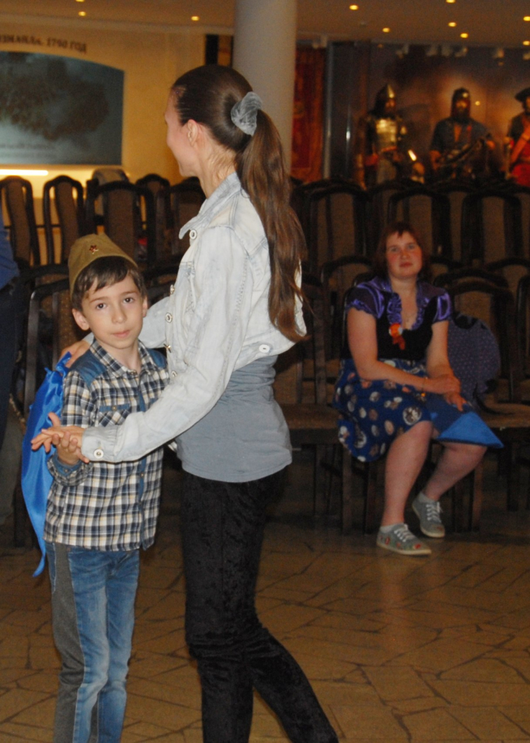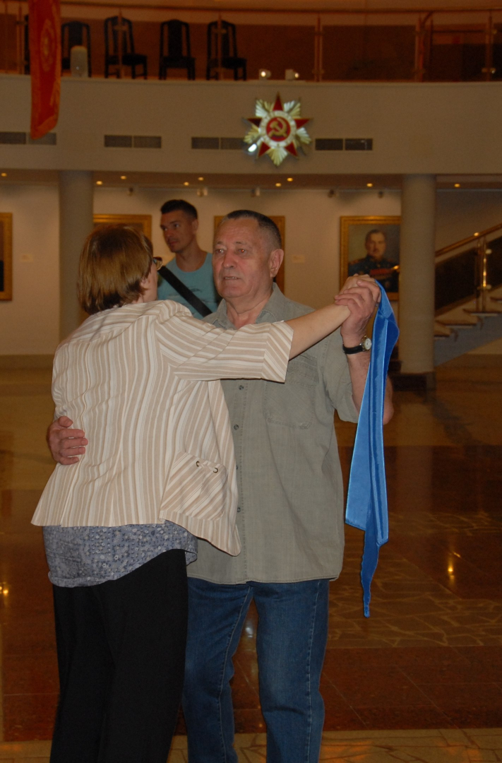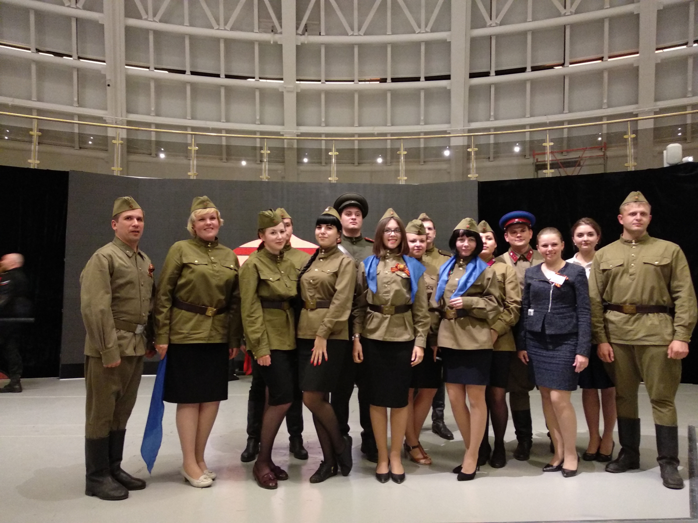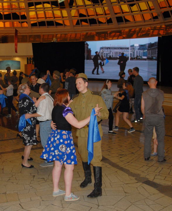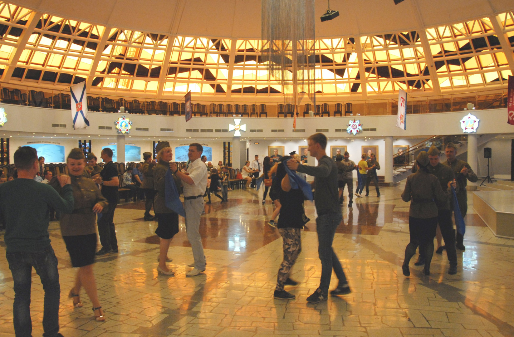 В торжественном зале под куполом «шлема» - патриотическая акция «Синий платочек Победы» под незабываемую мелодию в исполнении всенародно любимой певицы Клавдии Ивановны Шульженко.