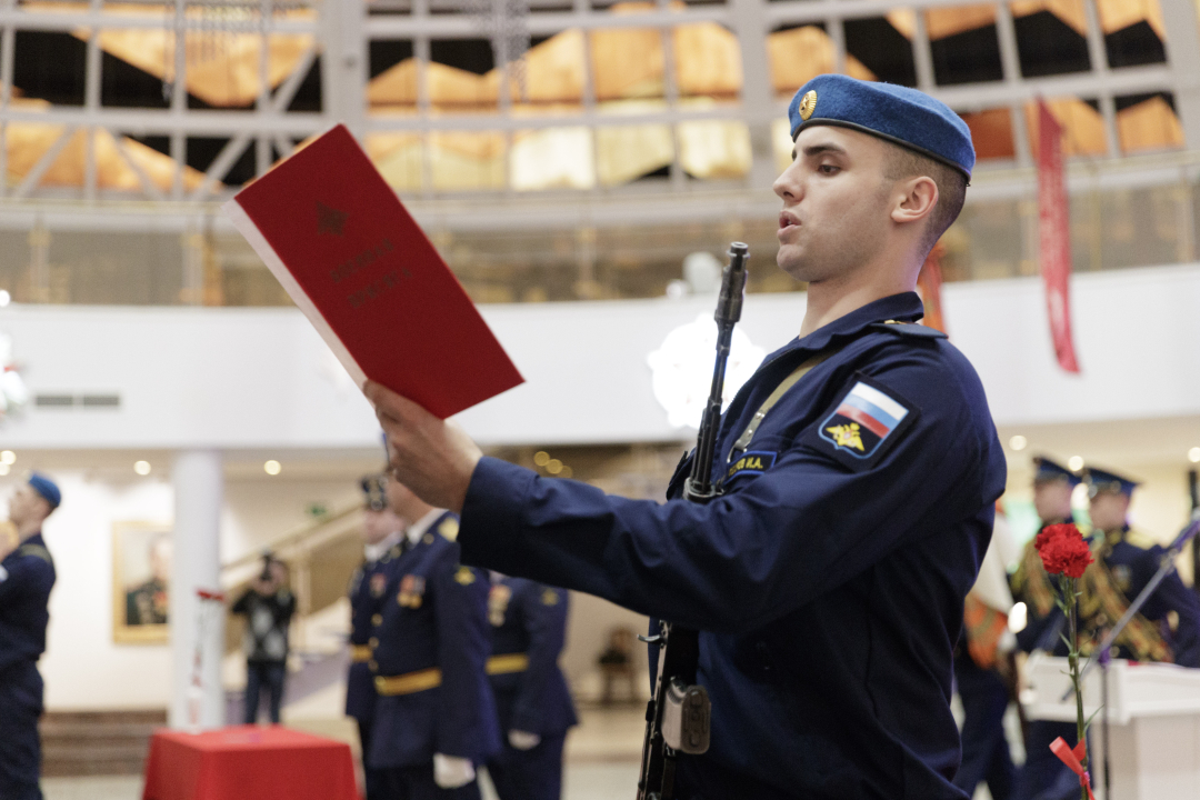 В Зале Славы российского оружия состоялась торжественная церемония принятия присяги личным составом научно-производственной роты 106-й гвардейской дивизии ВДВ. Десантники этого подразделения проходят службу на ведущих оборонно-промышленных предприятиях г. Тулы.