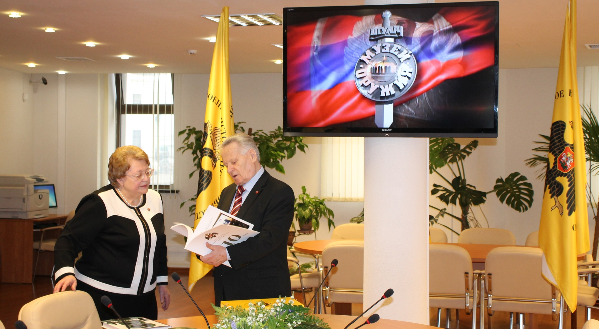 Р.И. Мединский подчеркнул готовность со стороны Российского военно-исторического общества всесторонне поддерживать музей в различных направлениях деятельности, в том числе в активной работе по формированию исторического самосознания граждан, и вручил музею памятные подарки.