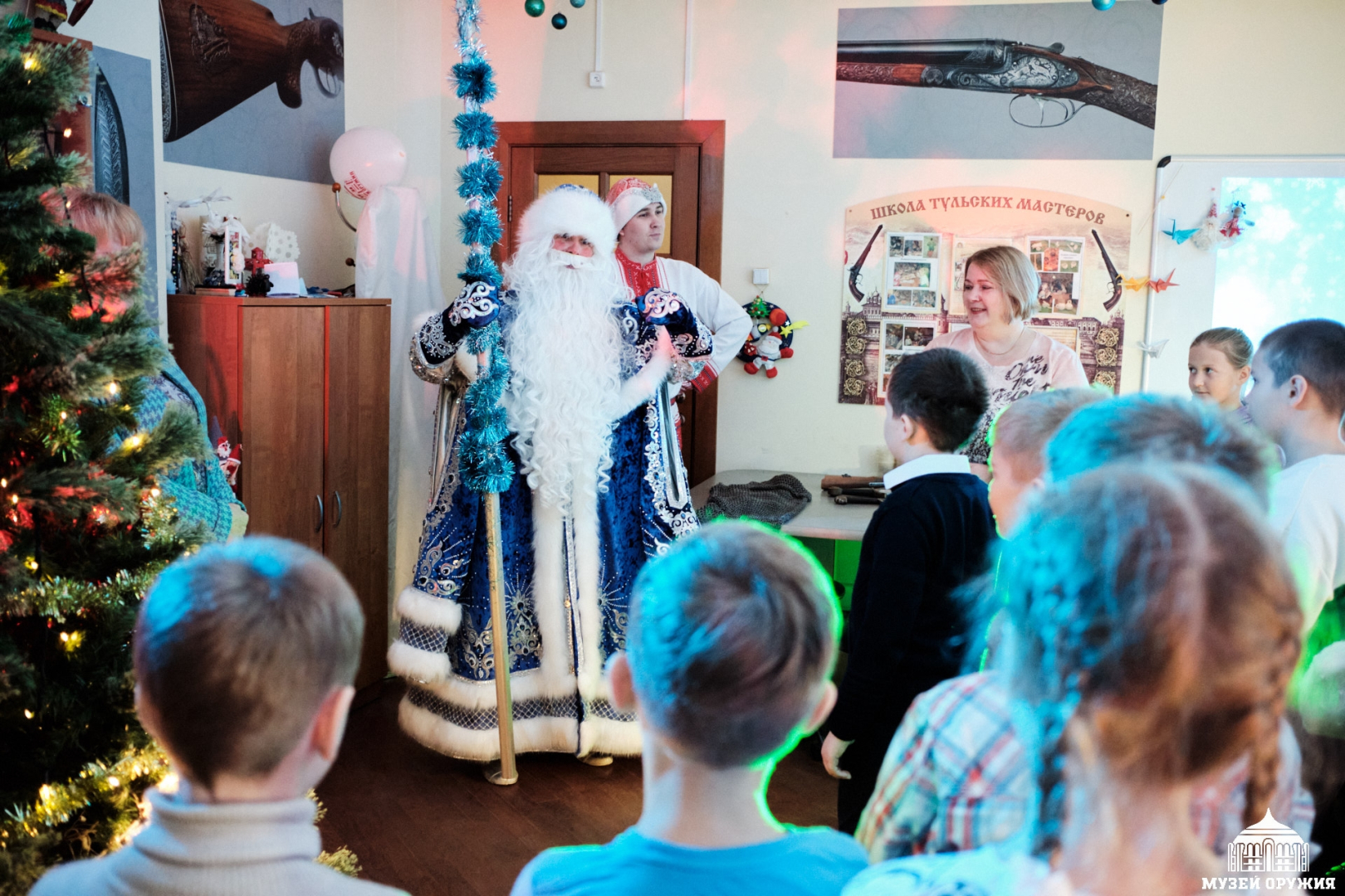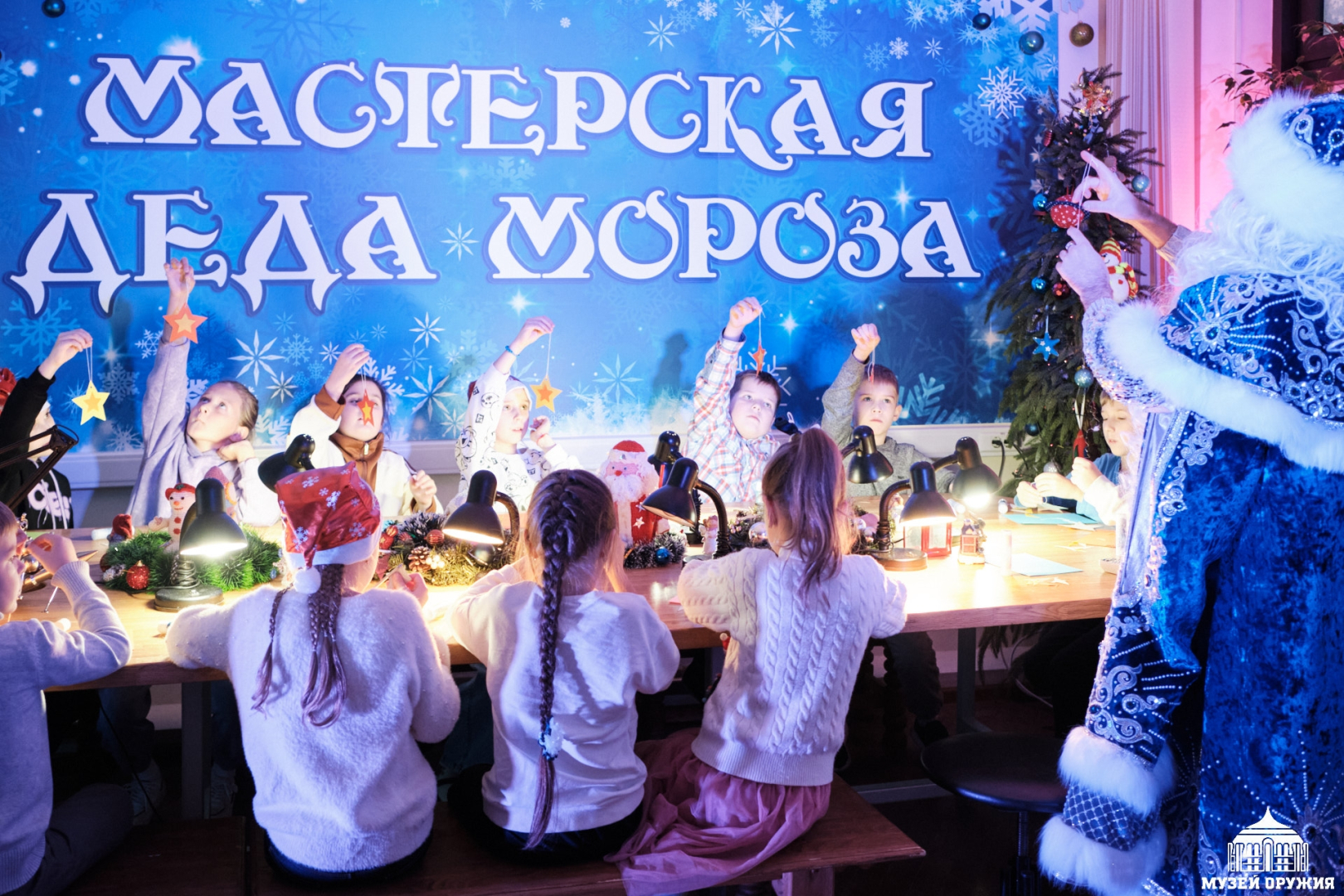 Сегодня юные посетители побывали у него в гостях и поздравили именинника! Ежегодно в этот день, по доброй традиции, в музее оружия открывает свои двери волшебная мастерская Деда Мороза. Мальчишки и девчонки знакомятся с традициями празднования Нового года, создают ёлочные украшения, а также принимают участие в яркой новогодней программе с чаепитием.