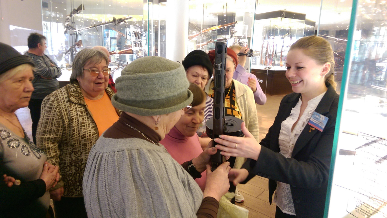 Музей оружия посетили представители Всероссийского общества слепых из города Наро-Фоминска. Возможности экспозиции и профессионализм экскурсоводов позволили гостям составить свое впечатление об особенностях коллекции и характерных чертах различных видов оружия.