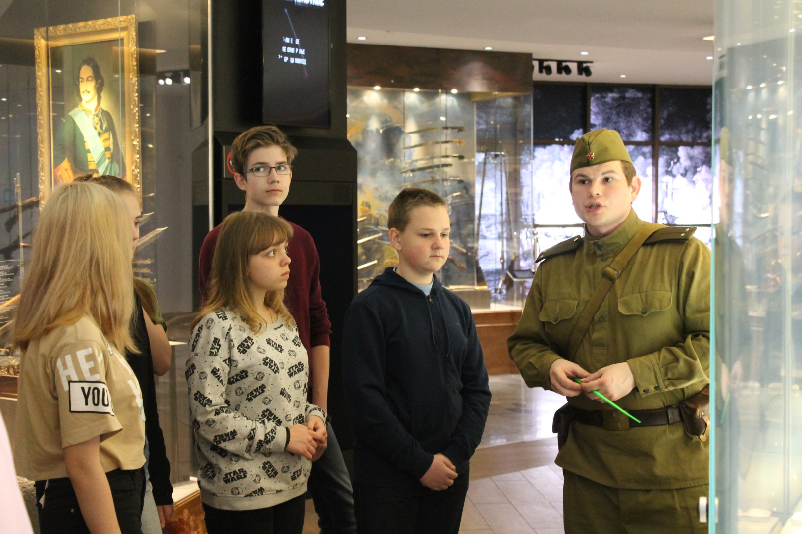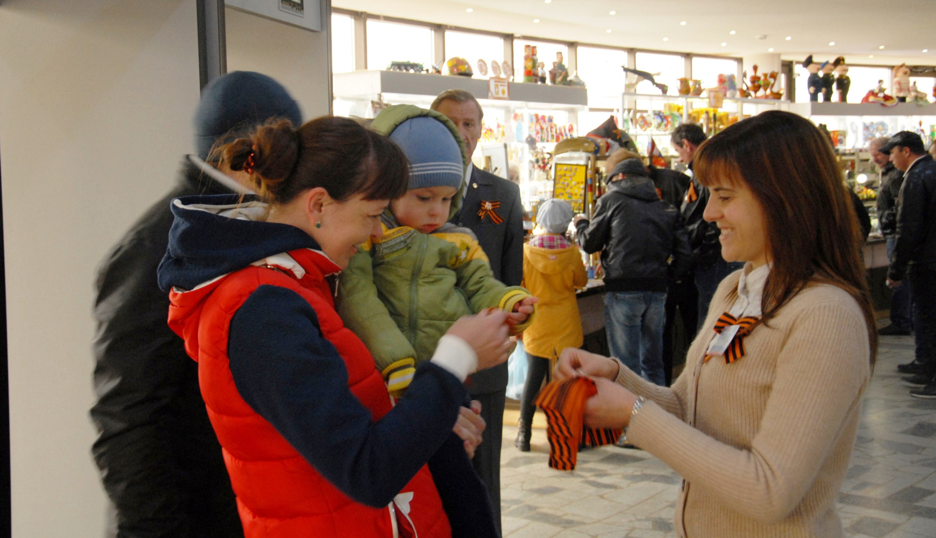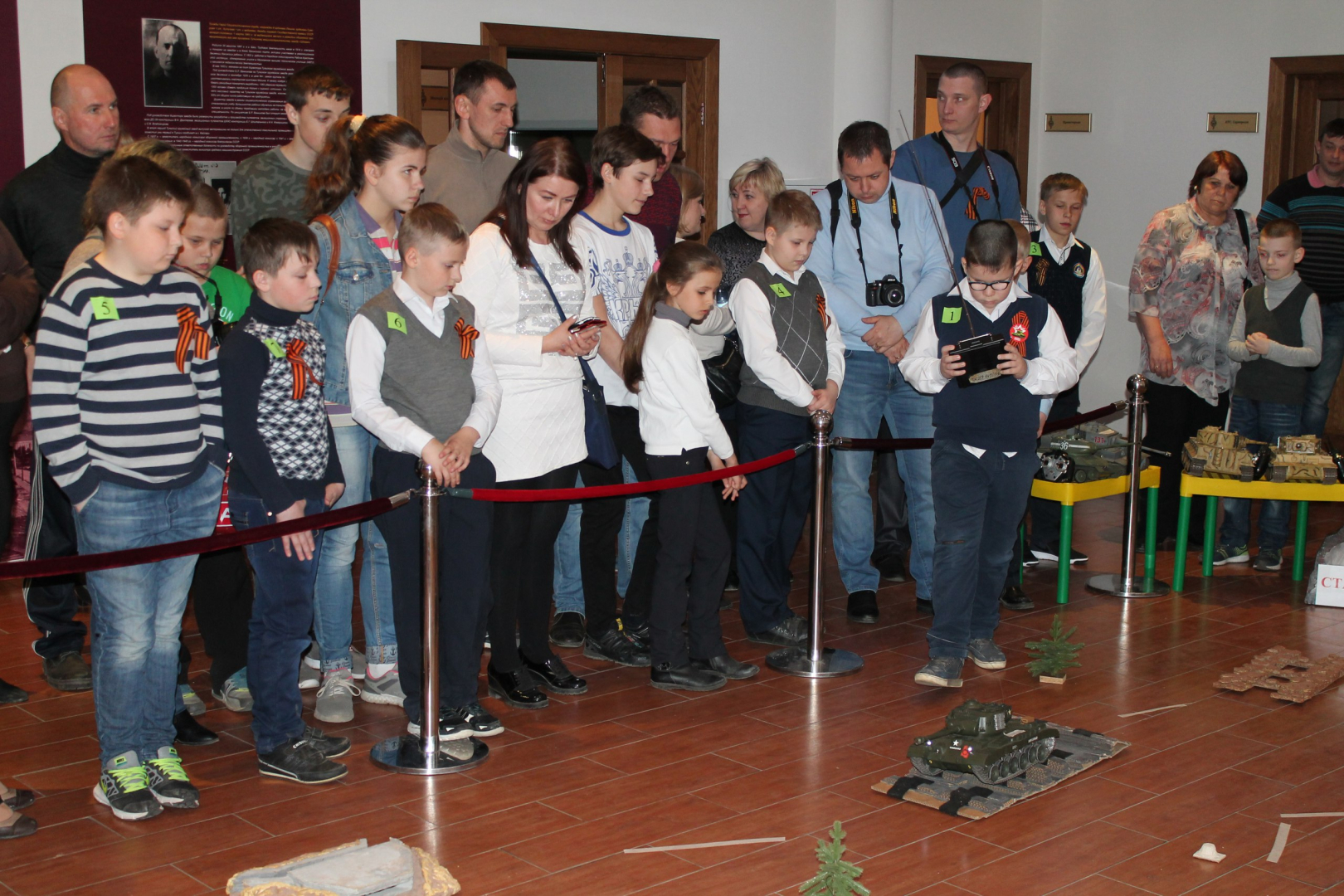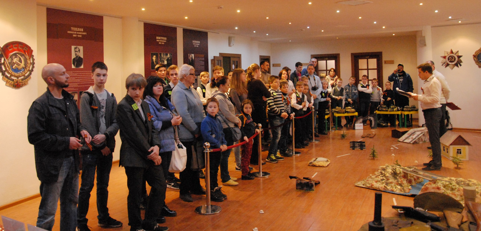 По традиции праздничная программа в музее оружия открылась трансляцией Парада Победы с Красной Площади и патриотической акцией «Георгиевская ленточка». На импровизированном танкодроме музея оружия в эти минуты проходит увлекательная тактическая игра-соревнование «Танковые бои» на радиоуправляемых моделях танков «Т-34» и «Тигр».