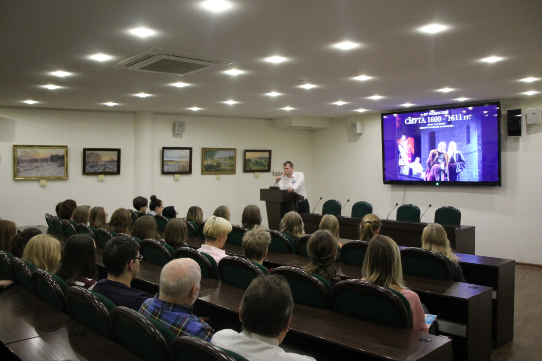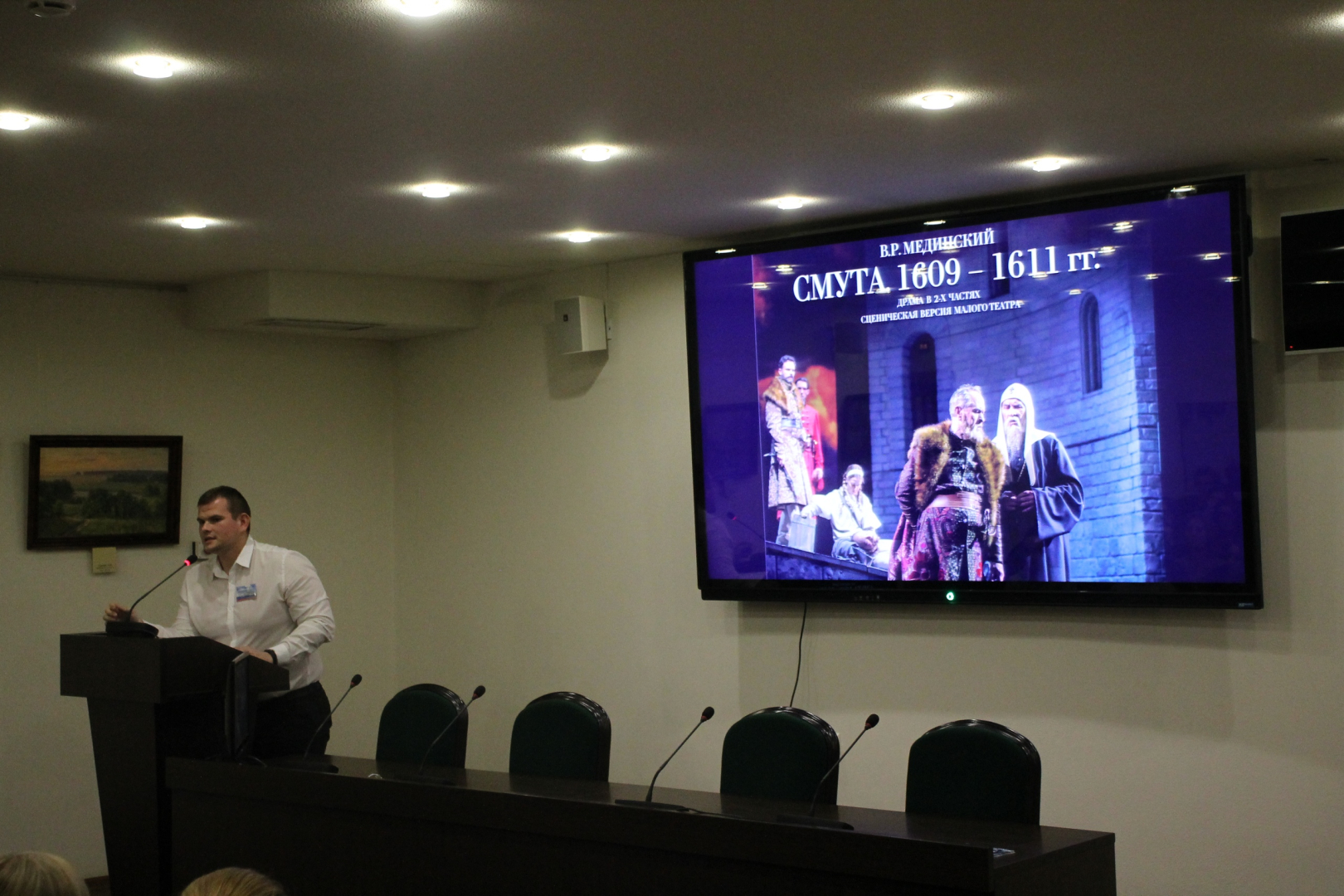 Сегодня в музее оружия в рамках спецпроекта «Театральная палитра» Благотворительного фонда социальных инициатив «Мир и гармония» для учащихся средних специальных заведений г. Тулы состоялась трансляция киноверсии спектакля «Смута» по книге В.Р. Мединского «Стена».